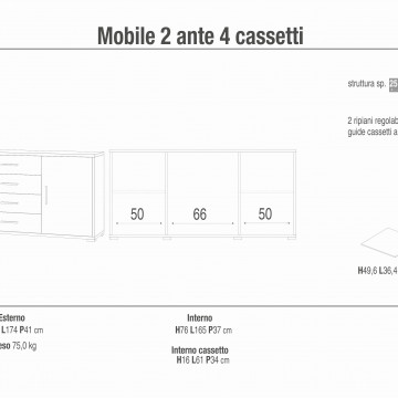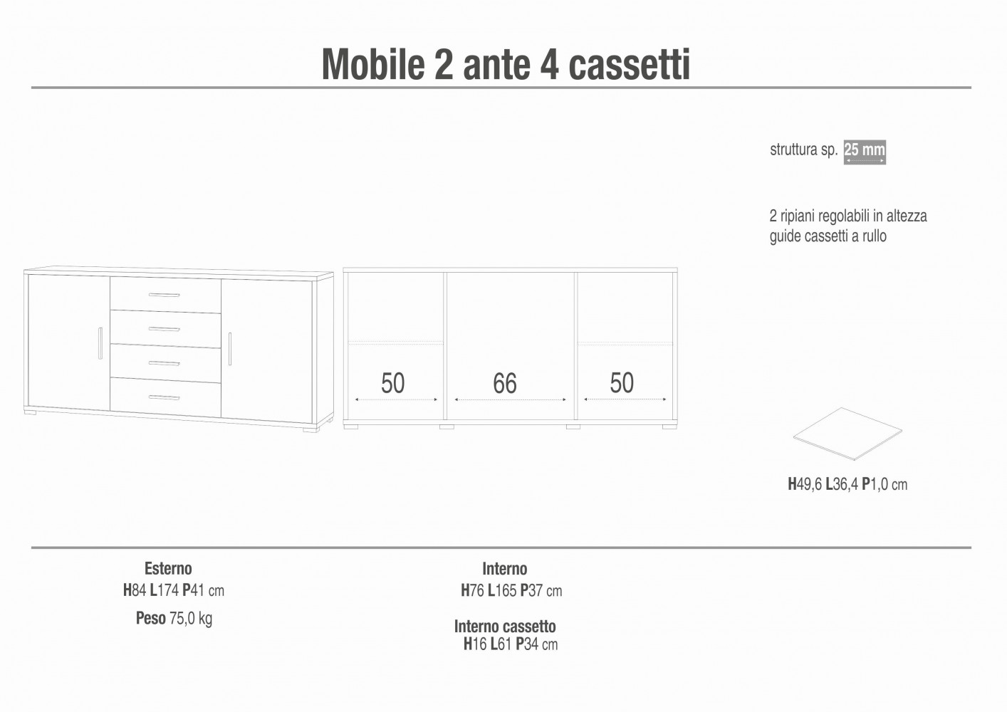 ADB804OSNSK MOBILE 2 ANTE 4 CASSETTI KIT OSSIDO BIANCO E NOCE STELVIO