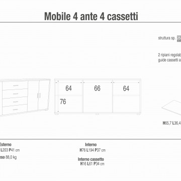 ADB808NSOSK MOBILE 4 ANTE 4 CASSETTI KIT NOCE STELVIO E OSSIDO BIANCO