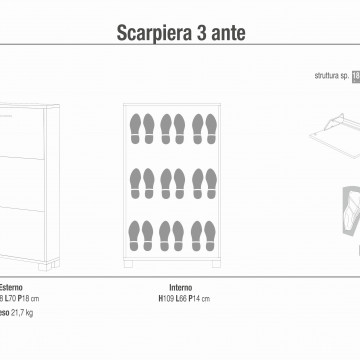 Scarpiera a 3 ante Dimensioni: cm 70 l x 18 p x 115 h