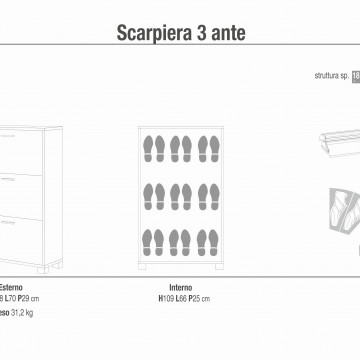 Scarpiera a 3 ante Dimensioni: cm 70 l x 29 p x 118 h