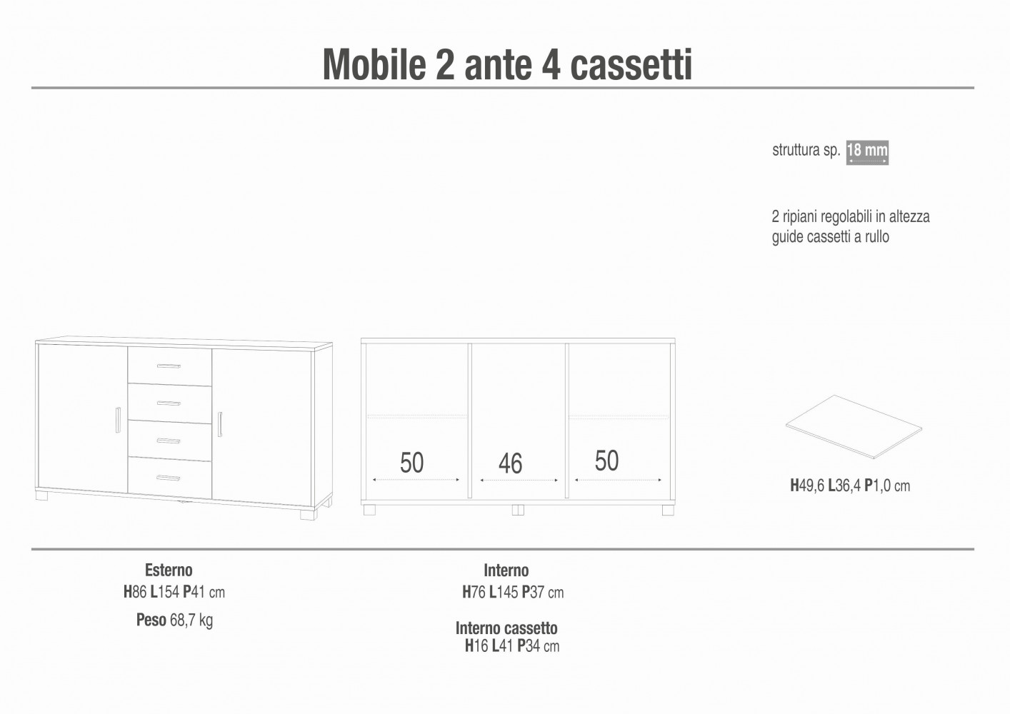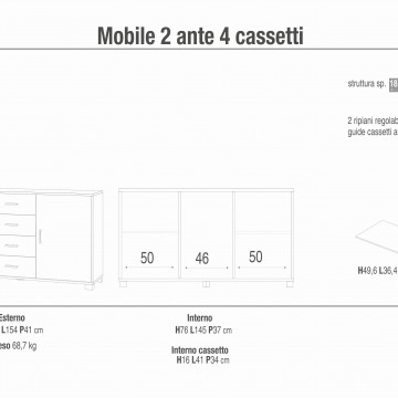 A779TTQB030 MOBILE 2 ANTE 4 CASSETTI TITANIO E QUERCIA BIANCO