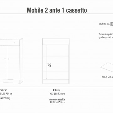 A14100EU008 MOBILE 2 ANTE 1 CASSETTO EUCALIPTO