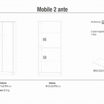 Armadietto con due ante Dimensioni: cm 62 l x 34 p x 105 h