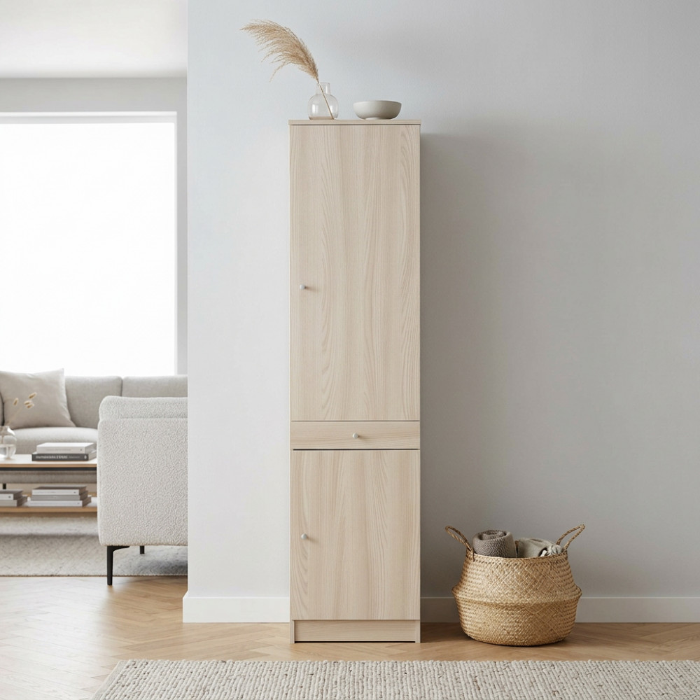 Mobile colonna portaoggetti a due ante ed un cassetto Dimensioni: cm 46 l x 34 p x 183 h