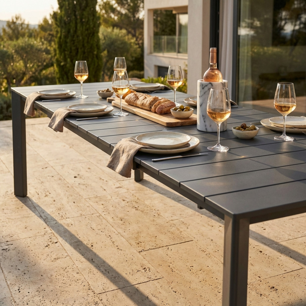 Struttura in alluminio verniciato BIANCO o TAUPE o ANTRACITE Dimensioni: cm 165/215 x 85 x 75,5 h