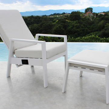 Struttura in alluminio verniciato bianco o antracite con cuscino Dimensioni: cm 65 l x 71 p x 101 h