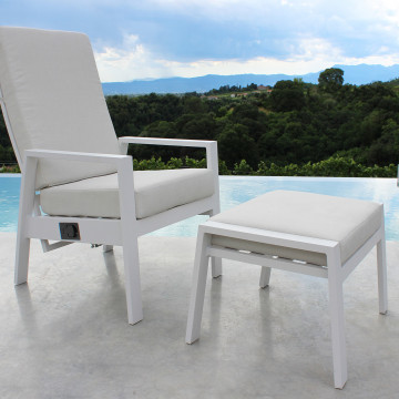 - Dati Tecnici Struttura in alluminio verniciato bianco o antracite con cuscino Dimensioni: cm 56 l x 65 p x 41 h