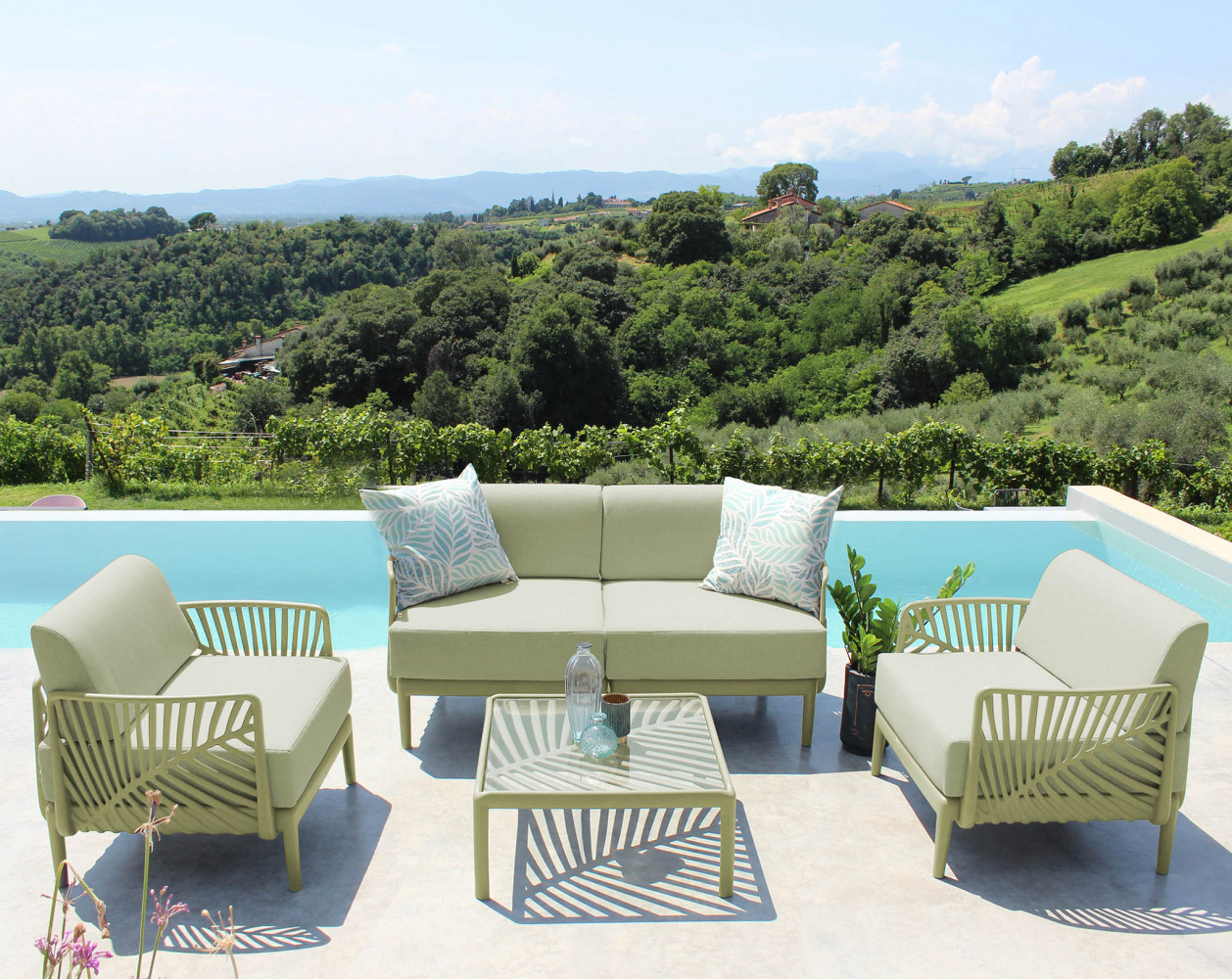 Struttura in polipropilene bianco, taupe, torotora o verde con cuscino Dimensioni: cm 69 l x 70 p x 42 h