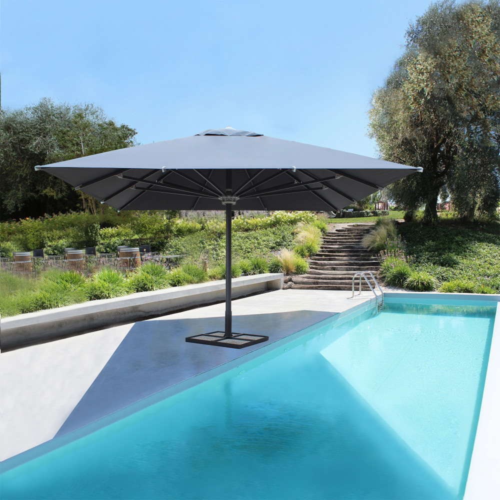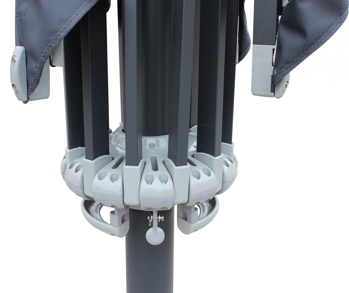 Telo in poliestere grigio 350 gr con antivento palo telescopico in alluminio verniciato antracite Dimensioni: cm 500 l x 500 p