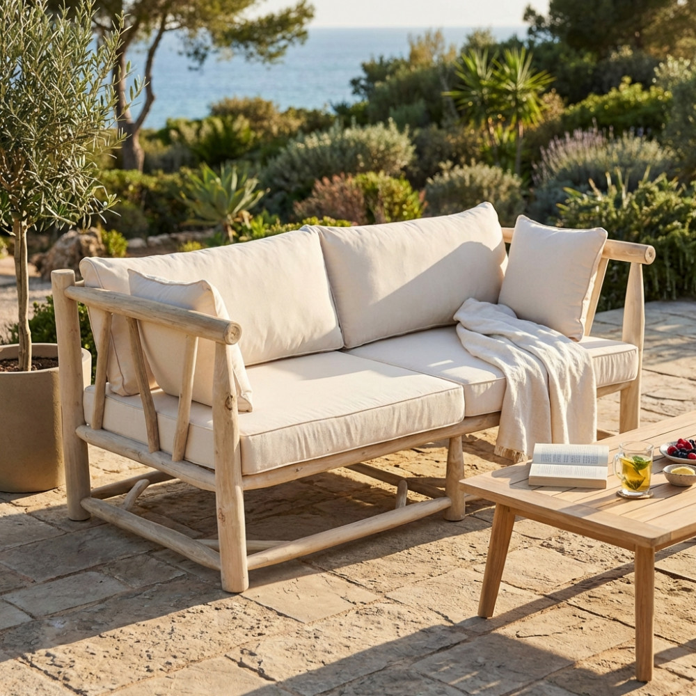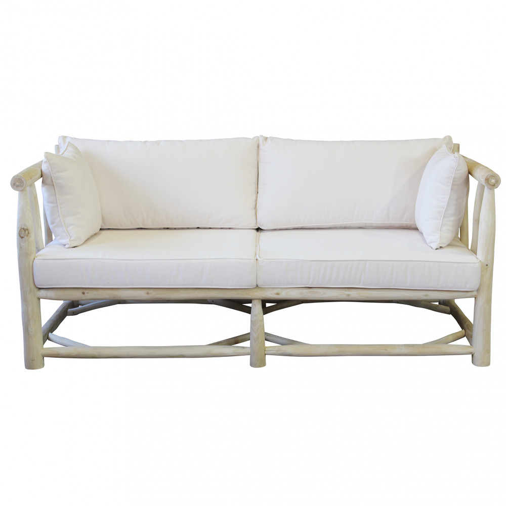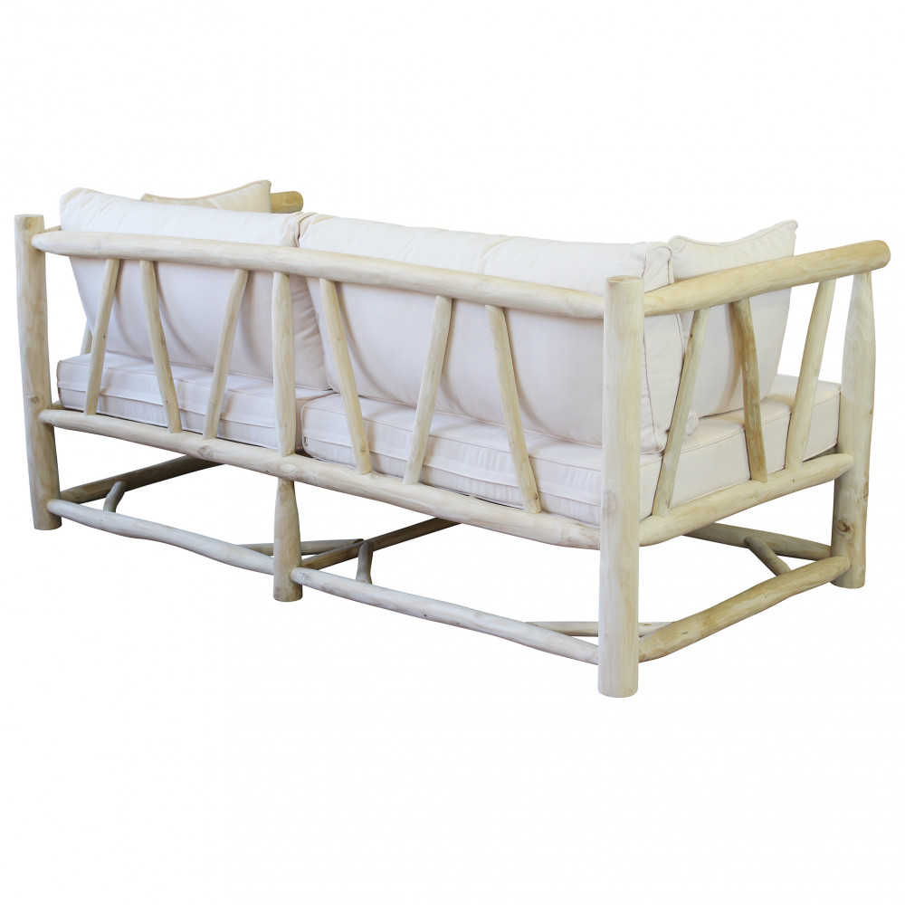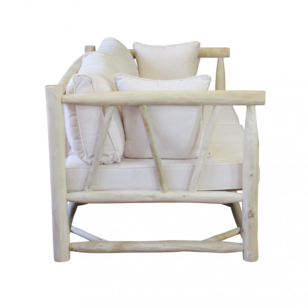 Divano in teak con cuscini 10 cm e 8 cm Dimensioni: cm 92 l x 180 p x 77 h