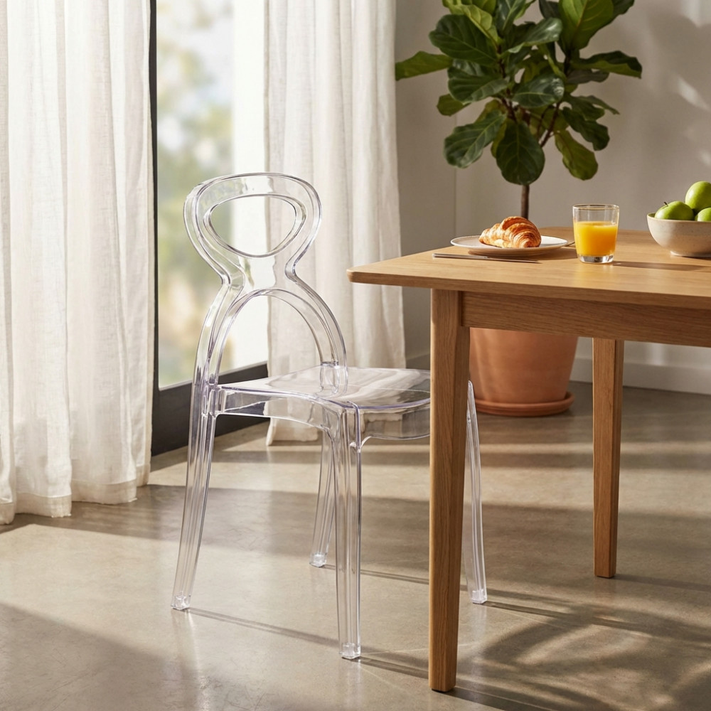 Struttura e seduta in policarbonato trasparente Dimensioni: cm 46,5 l x 53 p x 90 h