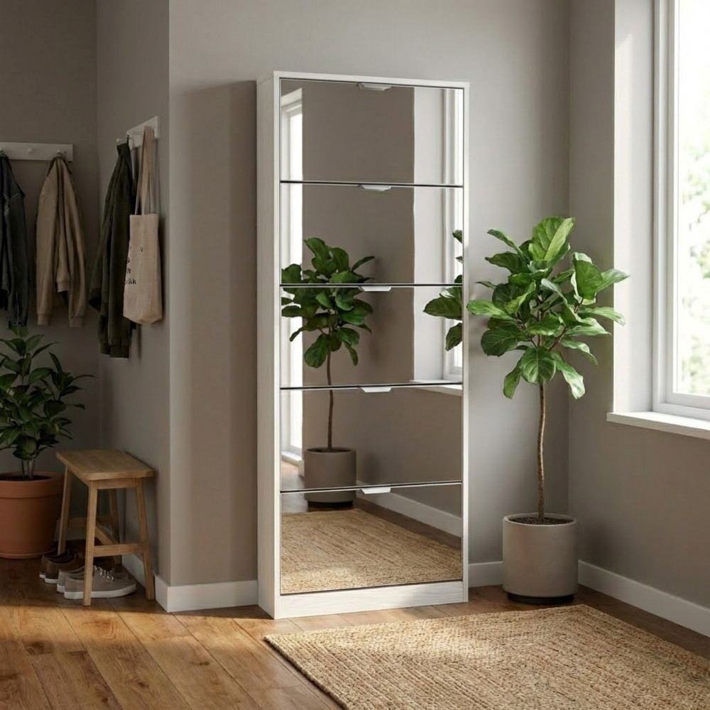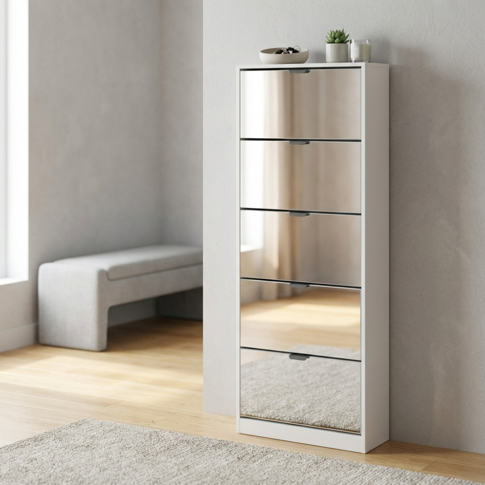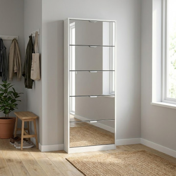 Scarpiera con 5 ante in legno con specchio Dimensioni: cm 24 l x 60 p x 180 h