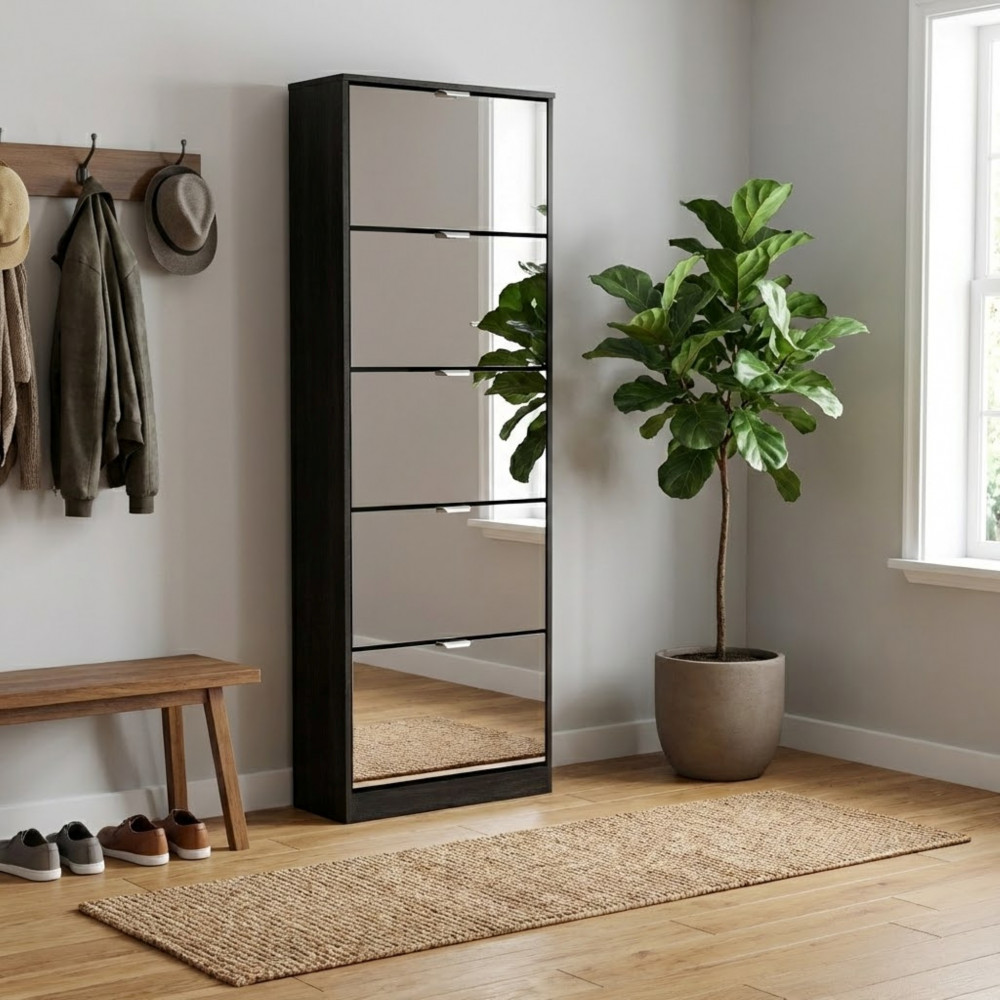 Scarpiera con 5 ante in legno con specchio Dimensioni: cm 24 l x 60 p x 180 h