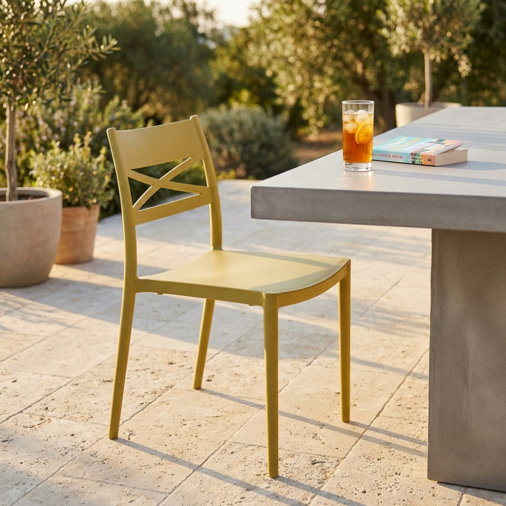 - Dati Tecnici Sedia in polipropilene impilabile antracite, bianca, verde petrolio, verde o giallo Dimensioni: