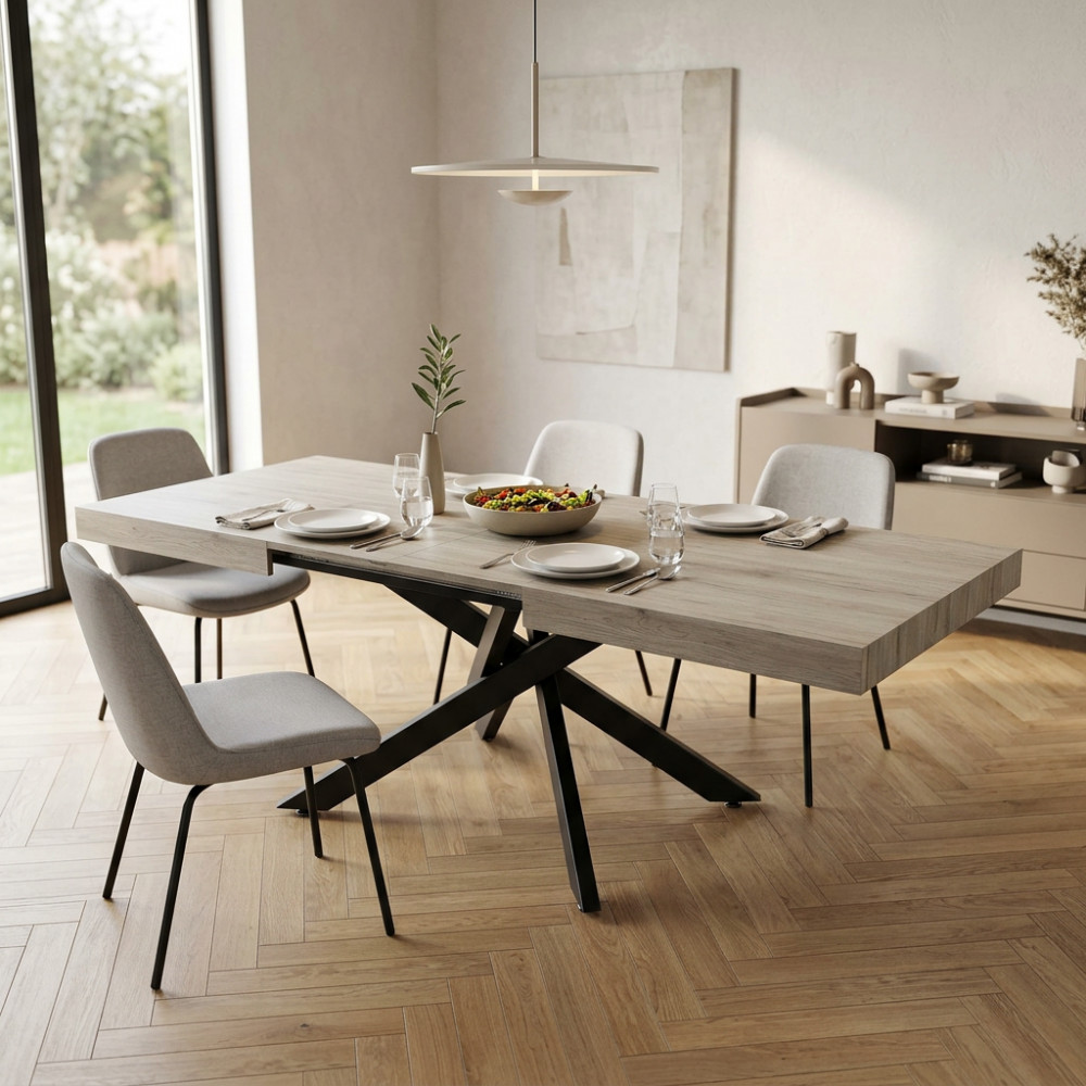 TAVOLO ALLUNGABILE DARREN NATURALE CON VENATURE STRUTTURA NERA 160/240 X 90