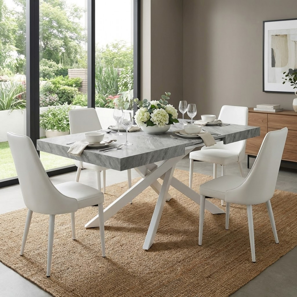 TAVOLO ALLUNGABILE DARREN GRIGIO EFFETTO PIETRA STRUTTURA BIANCA 160/240 X 90