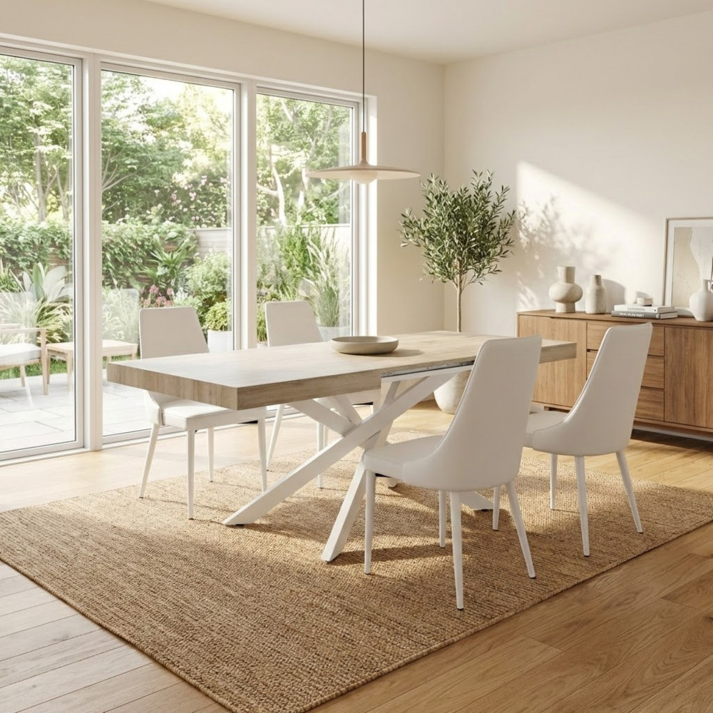 TAVOLO ALLUNGABILE DARREN NATURALE CON VENATURE STRUTTURA BIANCA 160/240 X 90