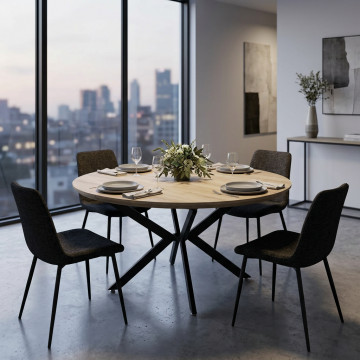TAVOLO ROTONDO ALLUNGABILE GARRY NATURALE NODATO STRUTTURA NERA 120/160 X 120