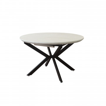 TAVOLO ROTONDO ALLUNGABILE GARRY BIANCO EFFETTO LEGNO STRUTTURA NERA 120/160 X 120