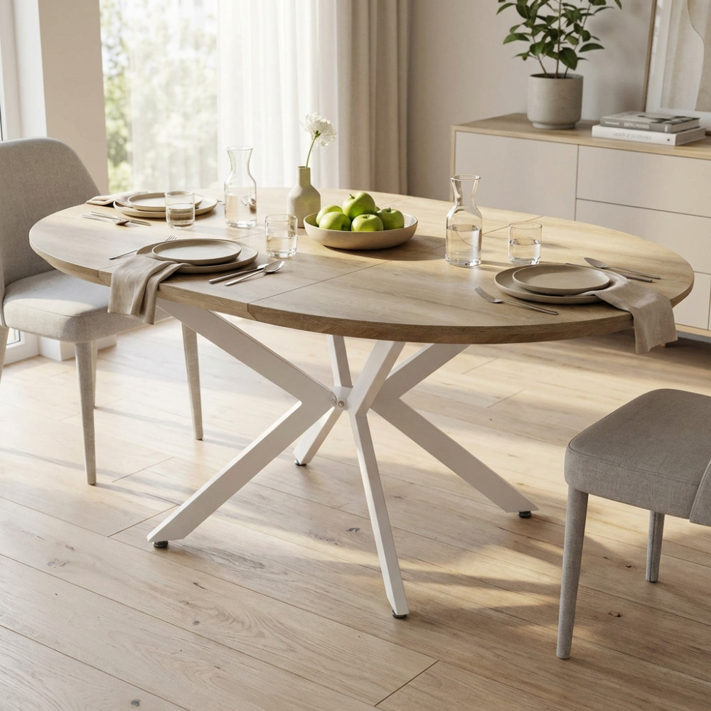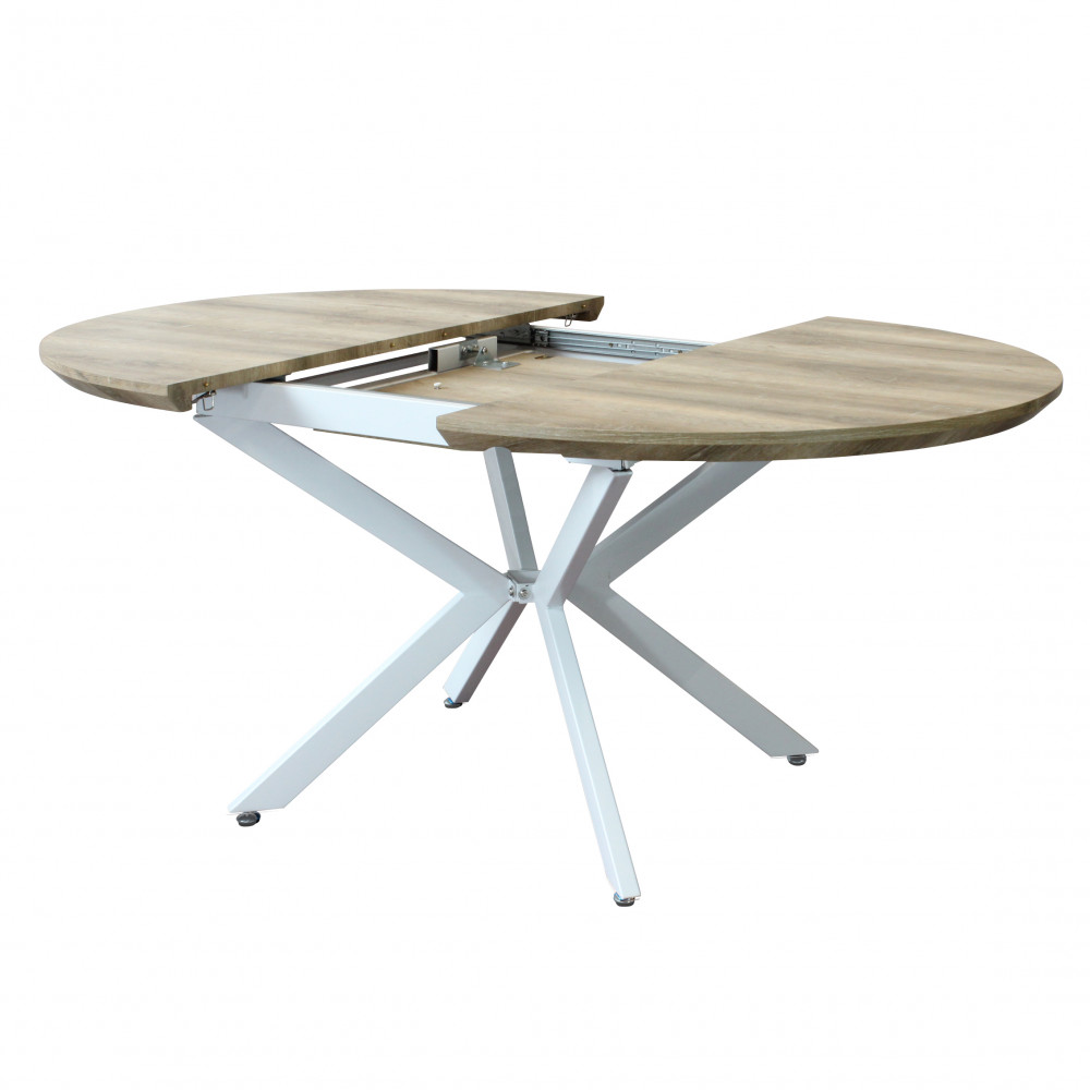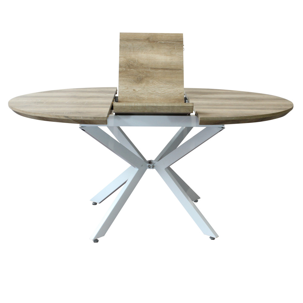 TAVOLO ROTONDO ALLUNGABILE GARRY NATURALE NODATO STRUTTURA BIANCA 120/160 X 120