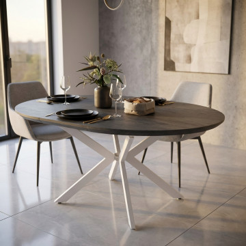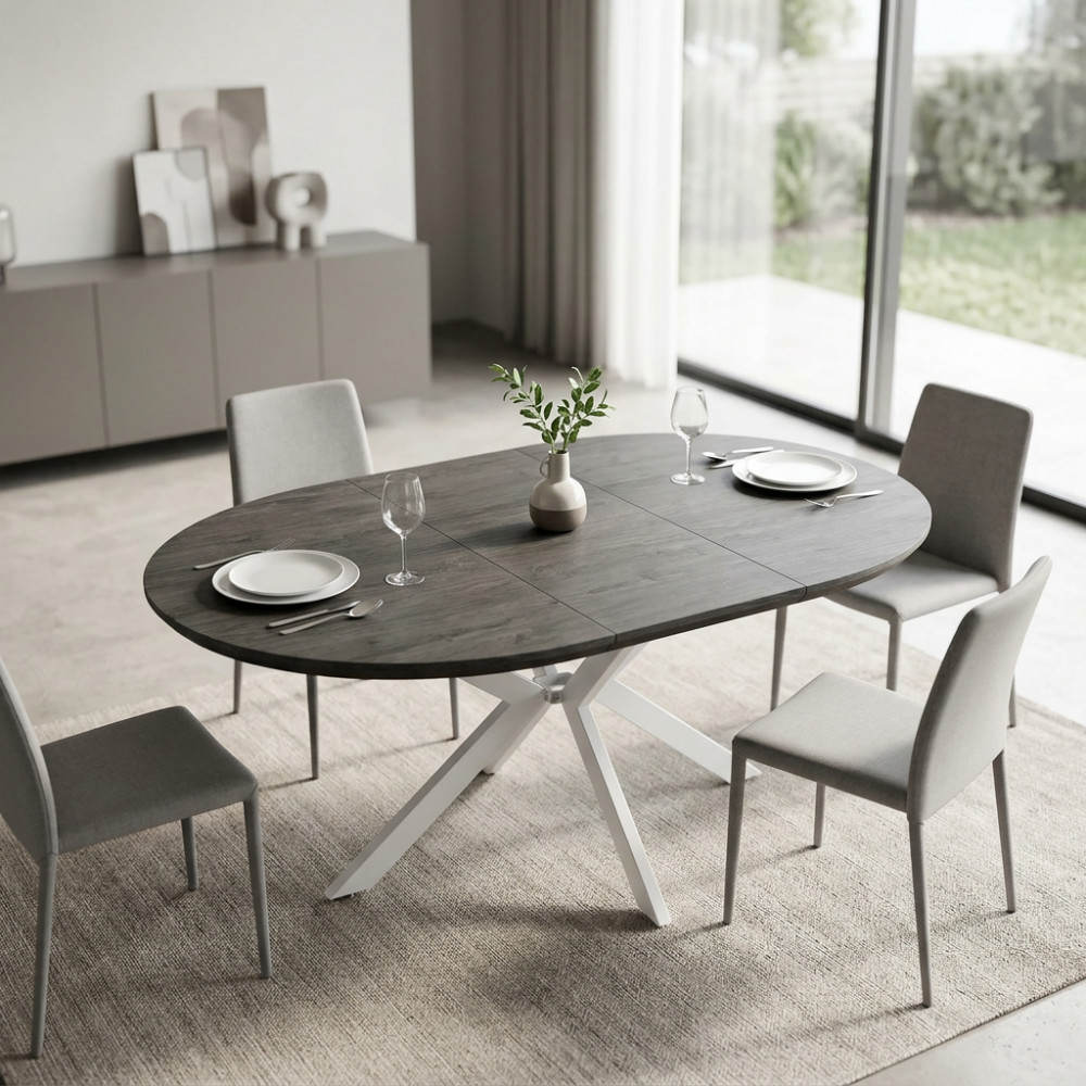 TAVOLO ROTONDO ALLUNGABILE GARRY ANTRACITE EFFETTO LEGNO STRUTTURA BIANCA 120/160 X 120