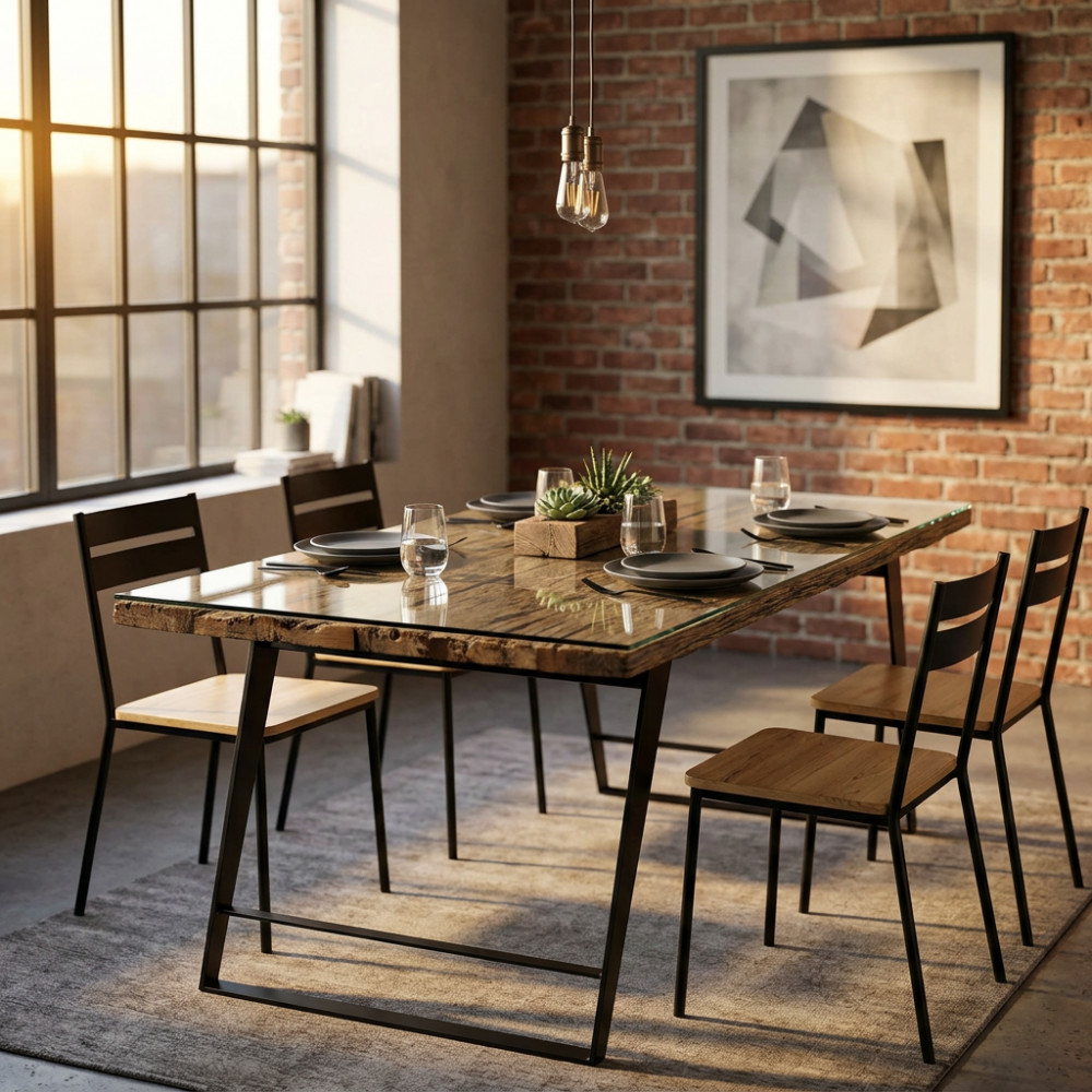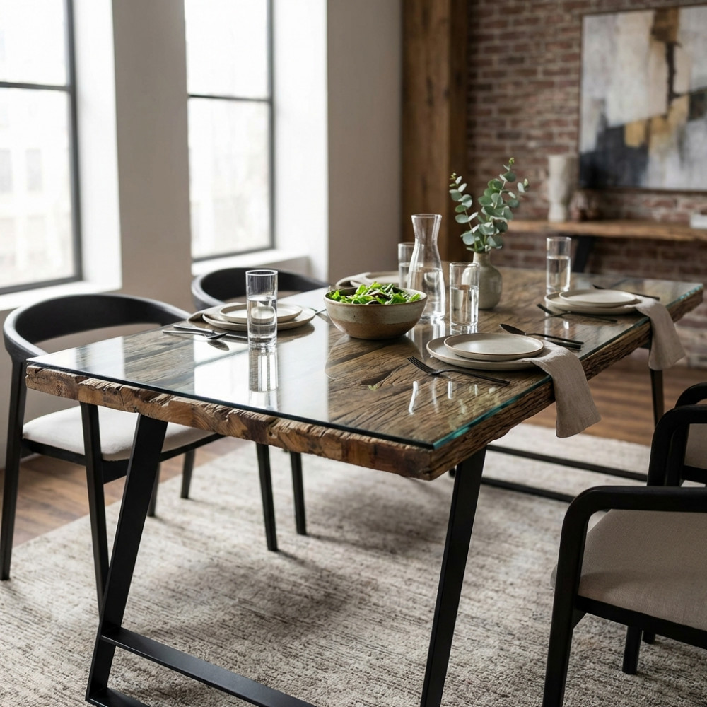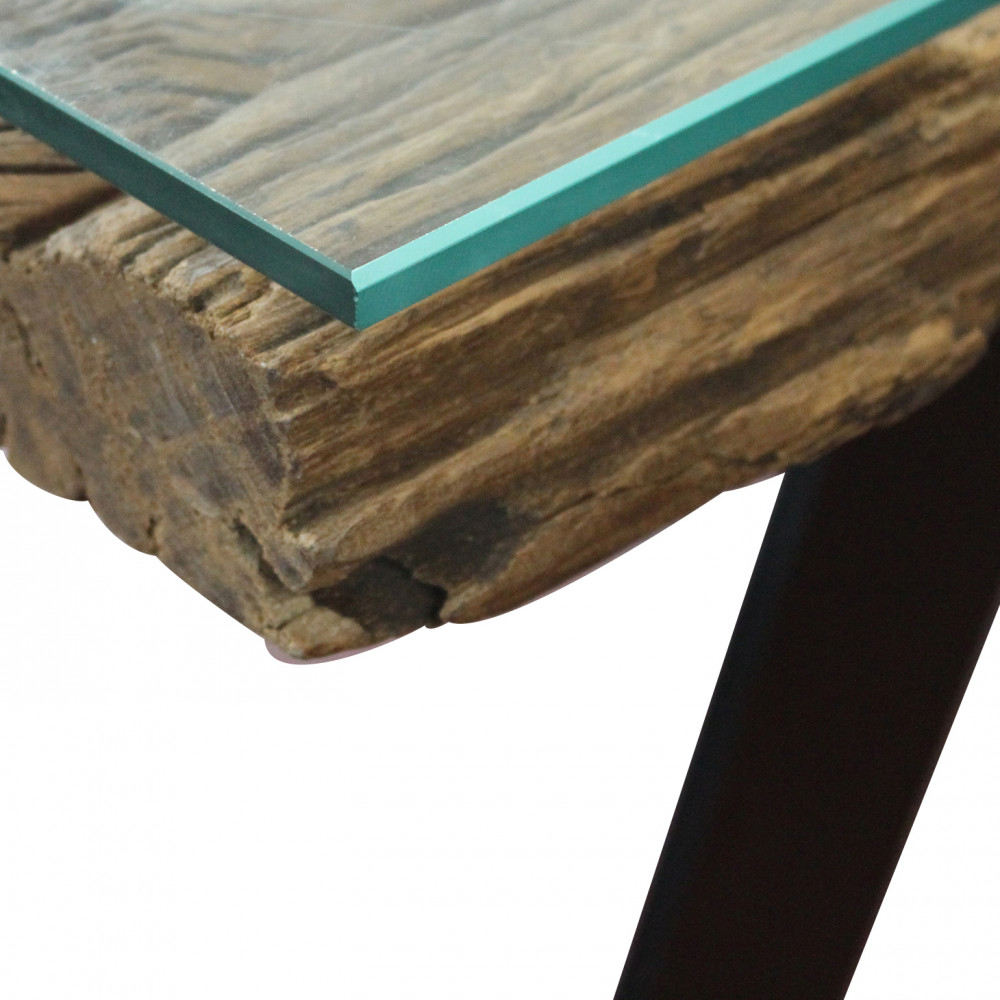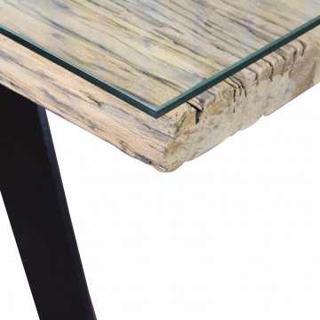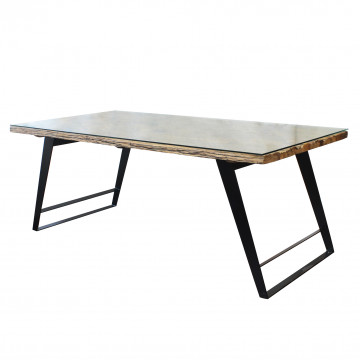 - Dati Tecnici Tavolo con piano in legno ferroviario riciclato e vetro temperato struttura in metallo Dimensioni: cm 100 l x 200 p x 77 h