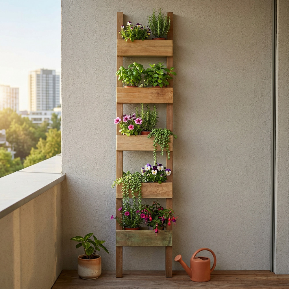 Fioriera in legno riciclato Dimensioni: cm 35 l x 10 p x 170 h