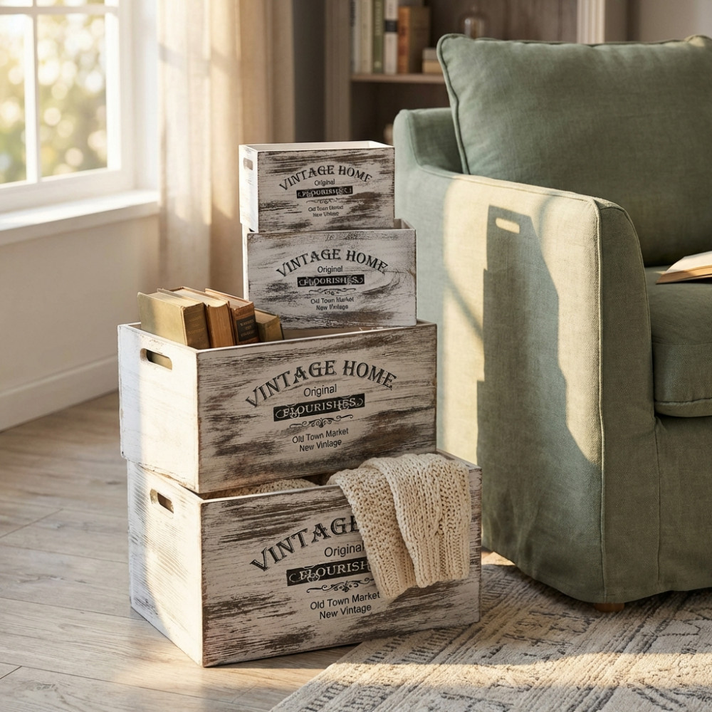 - Dati Tecnici Set di 4 cassette in legno Dimensioni: Grande: 42x31x22 Media: 37x26x20 Piccola1: 32x21x18 Piccola2: 27x16x16