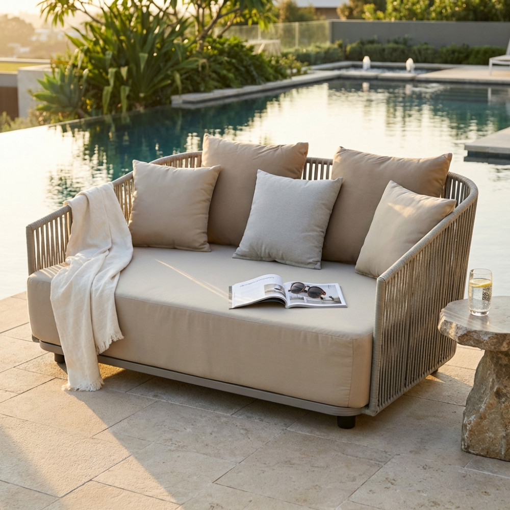 Struttura in alluminio verniciato taupe rivestimento in corda in pvc Dimensioni: cm 175 l x 89 p x 158 h