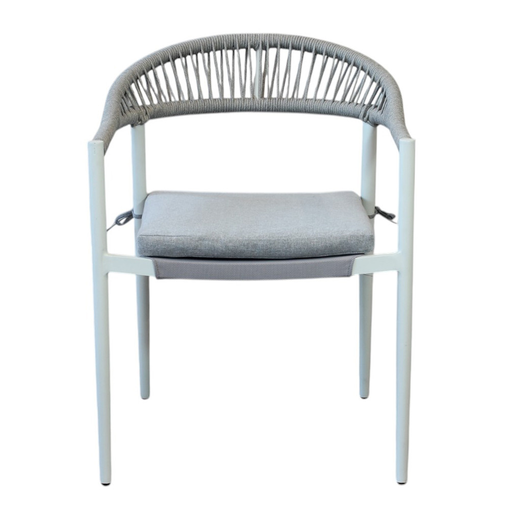 Struttura in alluminio verniciato bianco o antracite schienale in corda seduta in textilene Dimensioni: cm 57 l x 58 p x 76 h