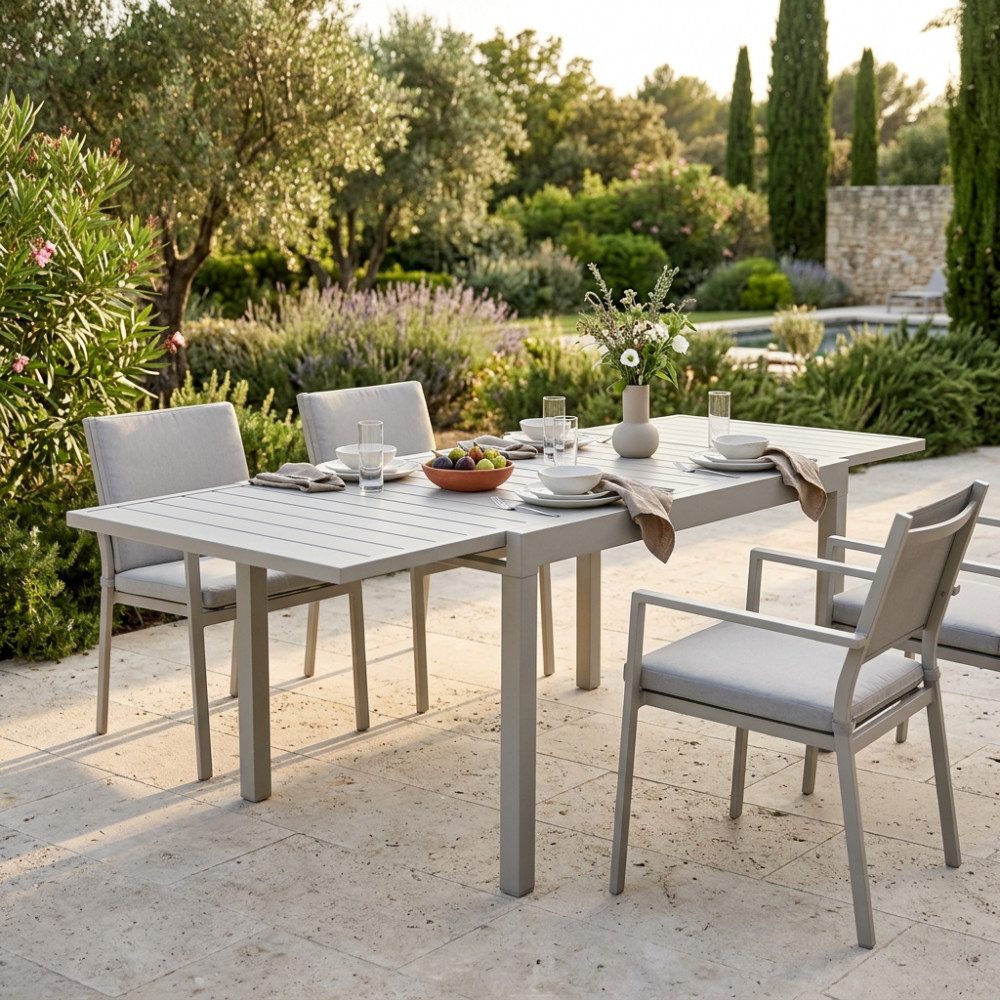 Struttura e piano in allumino bianco o tortora o taupe o antracite Dimensioni: cm 75/150 l x 75 p x 77 h