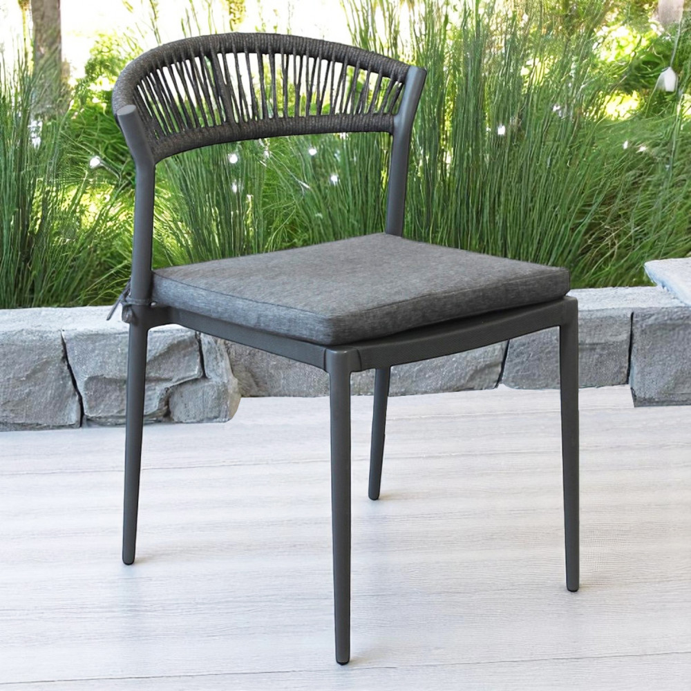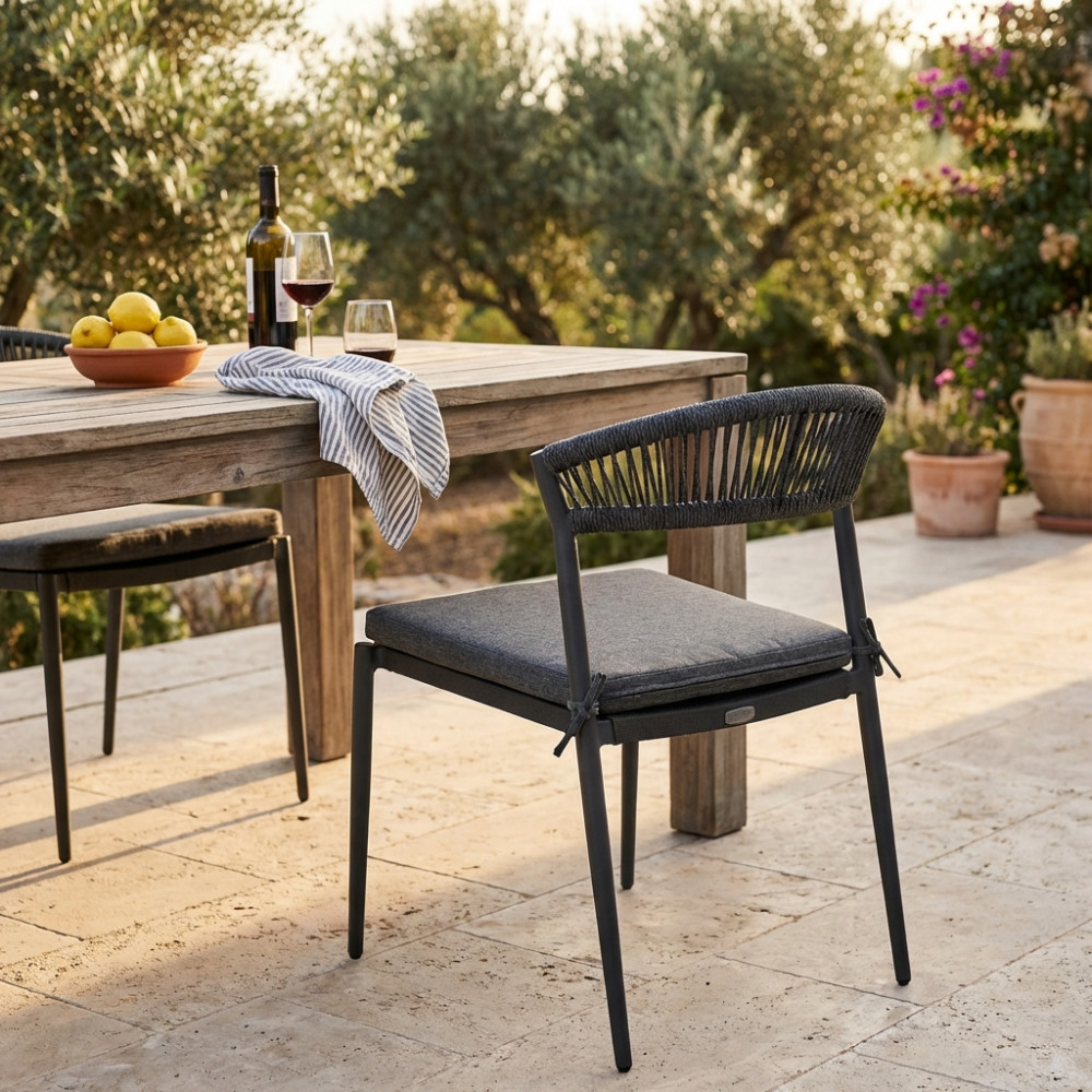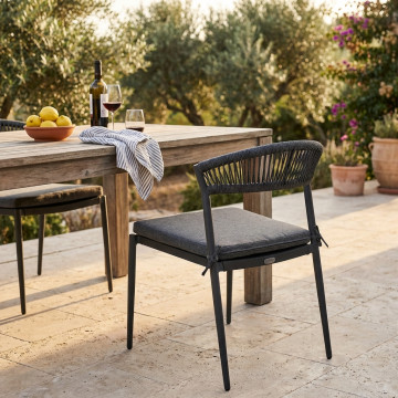 Struttura in alluminio verniciato bianco o antracite schienale in corda seduta in textilene Dimensioni: cm 54 l x 58 p x 76 h