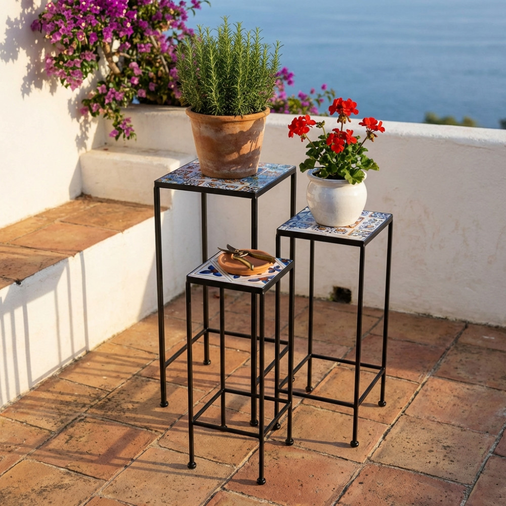 Fioriere con decoro base in ferro verniciato a polvere antracite Dimensioni: Grande: cm 28x66x28 Media: cm 23x59x23 Piccola: cm 18x52x18