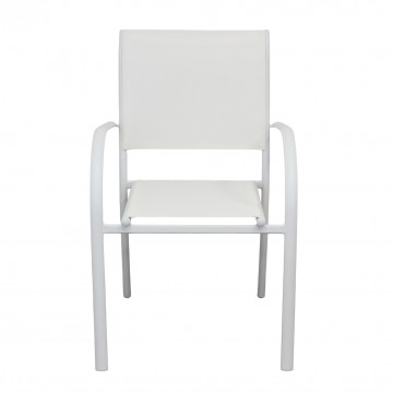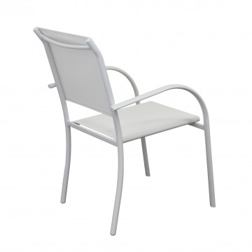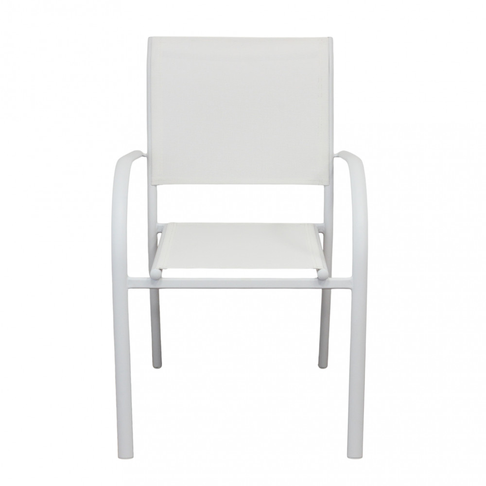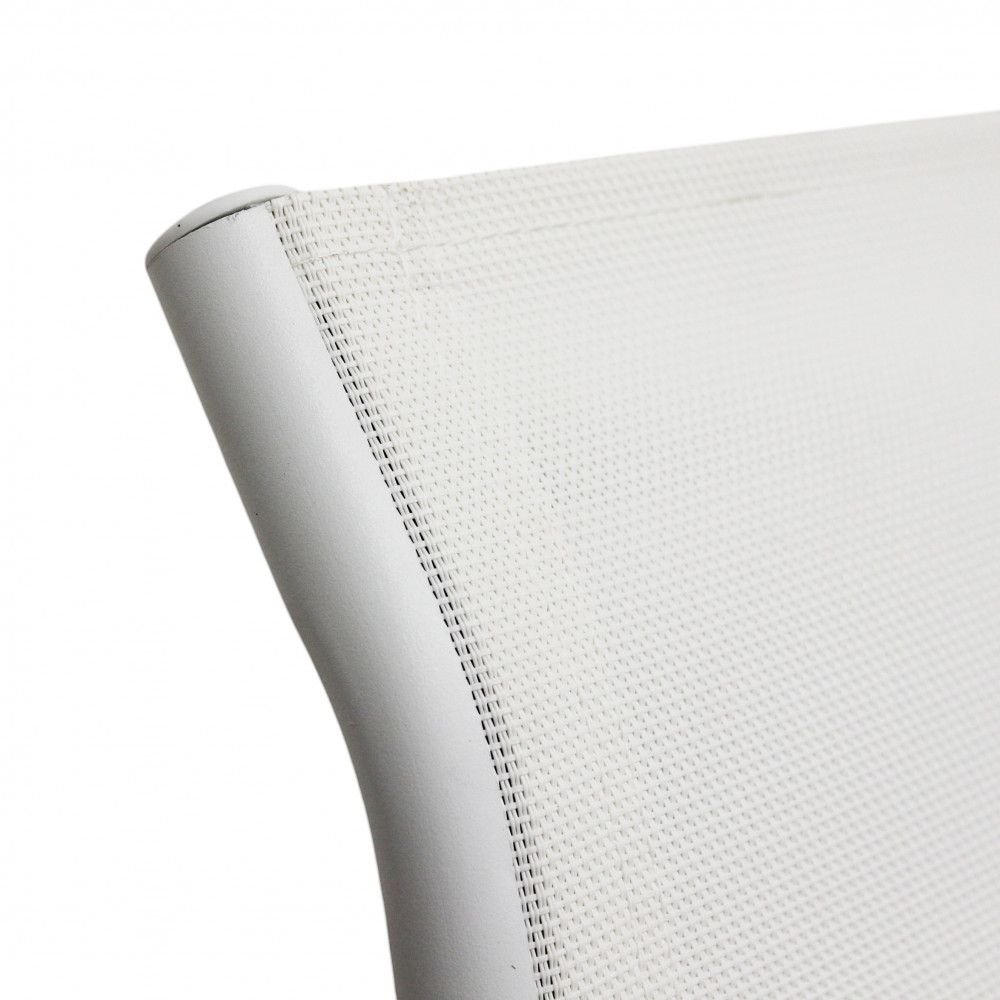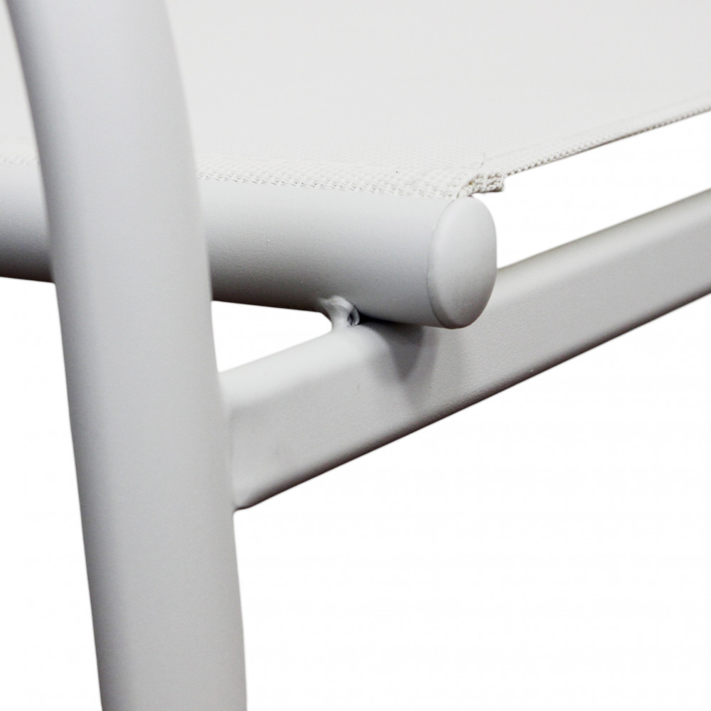 Struttura in allumino bianco o tortora o taupe o antracite seduta e schienale in textilene Dimensioni: cm 56 l x 63 p x 86 h