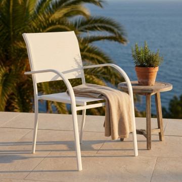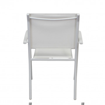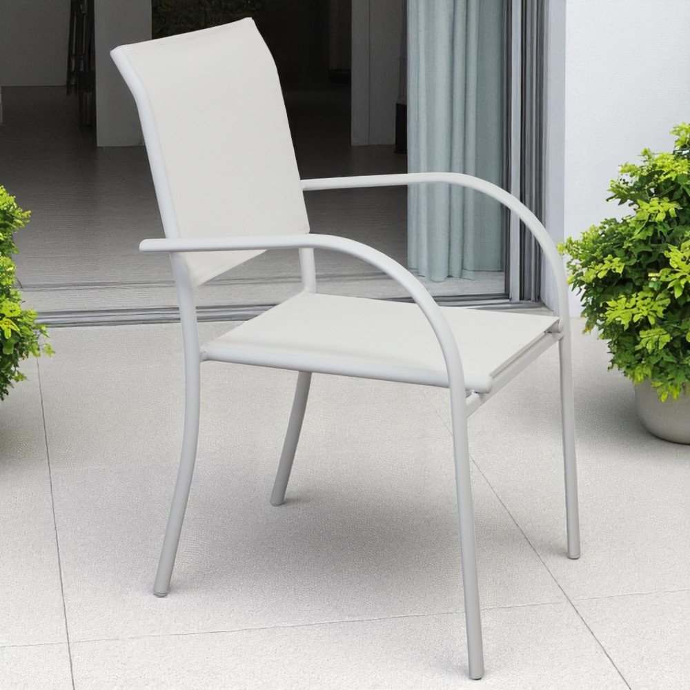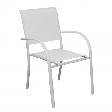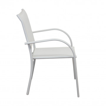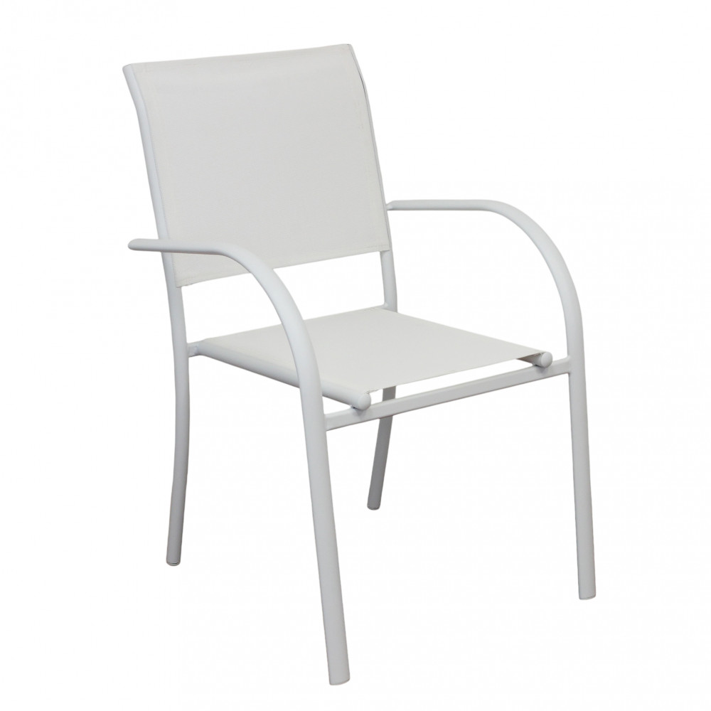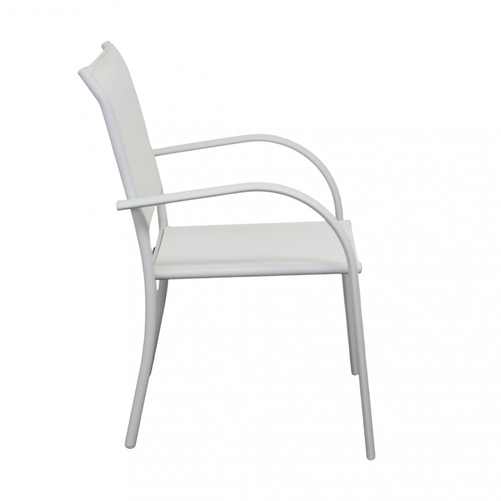 Struttura in allumino bianco o tortora o taupe o antracite seduta e schienale in textilene Dimensioni: cm 56 l x 63 p x 86 h