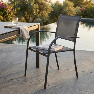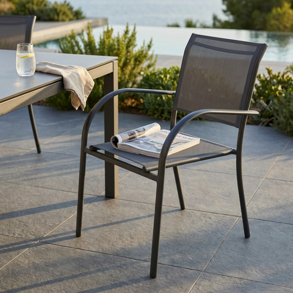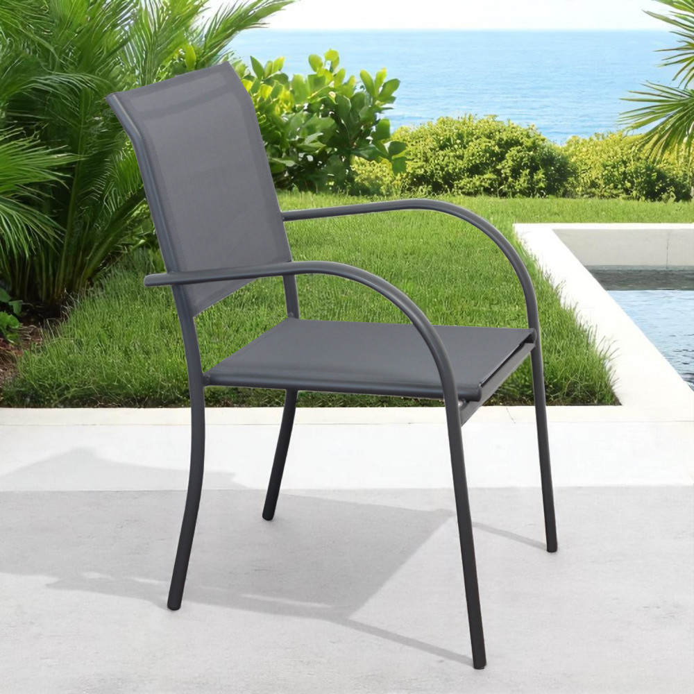 Struttura in allumino bianco o tortora o taupe o antracite seduta e schienale in textilene Dimensioni: cm 56 l x 63 p x 86 h