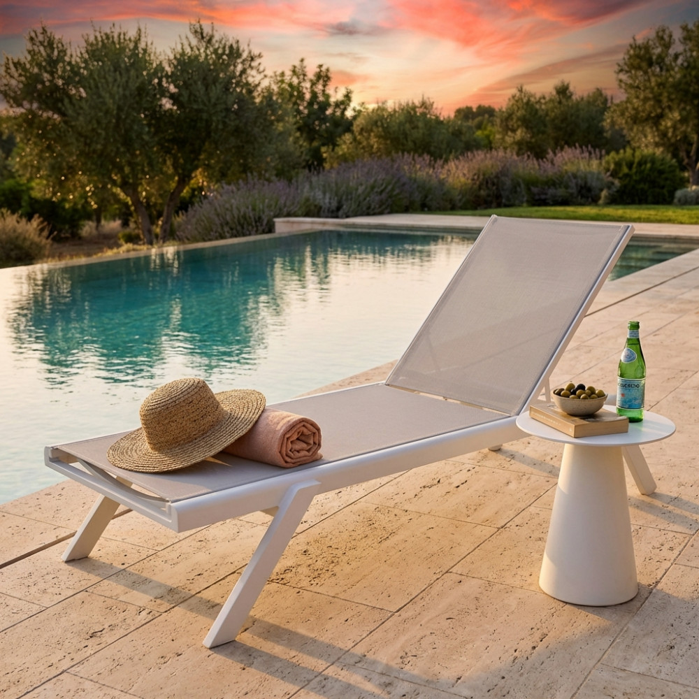 Struttura in alluminio verniciato bianco o antracite textilene bianco, grigio chiaro o antracite su antracite Dimensioni: cm 198 l x 72 p x 35,5 h