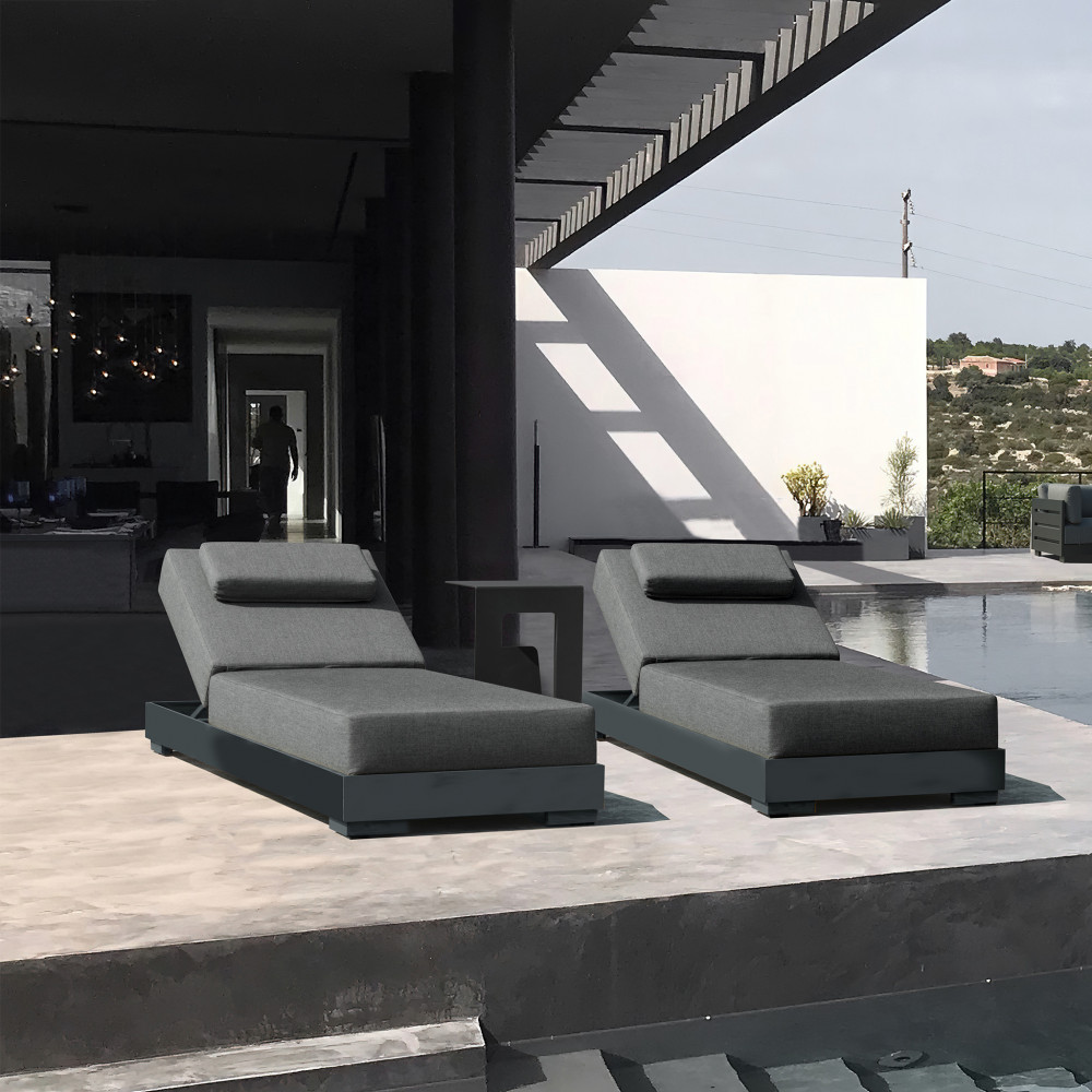 Struttura in alluminio bianco o antracite cuscini di spessore 18 cm, trattamento tpu idrorepellente Dimensioni: cm 203 l x 76 p x 34/99 h