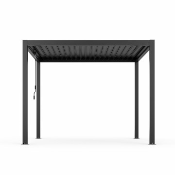 Struttura in alluminio grigio scuro copertura a lamelle frangisole orientabili a movimentazione manuale Dimensioni: cm 300 l x 400 p x 250 h