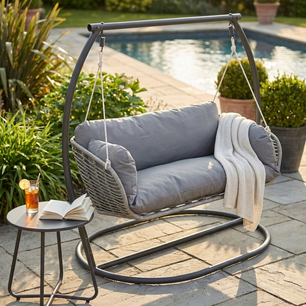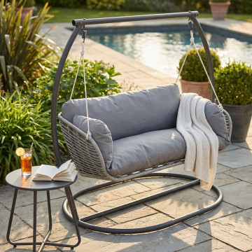 - Dati Tecnici Struttura e seduta in metallo bianca o antracite wicker bianco, grigio o naturale Dimensioni: cm 150 l x 160 p x 105 h