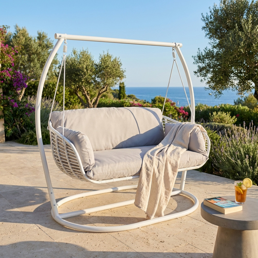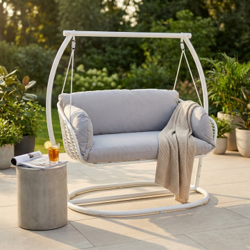 - Dati Tecnici Struttura e seduta in metallo bianca o antracite wicker bianco, grigio o naturale Dimensioni: cm 150 l x 160 p x 105 h