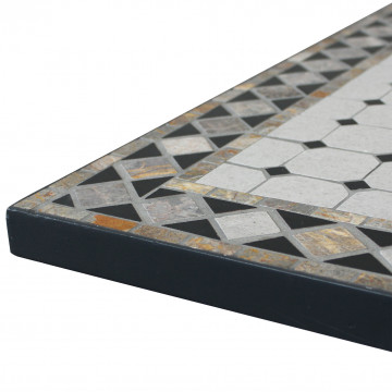 Piano ovale con mosaico beige e antracite base in ferro verniciato a polvere antracite Dimensioni: cm 160 l x 90 p x 75 h
