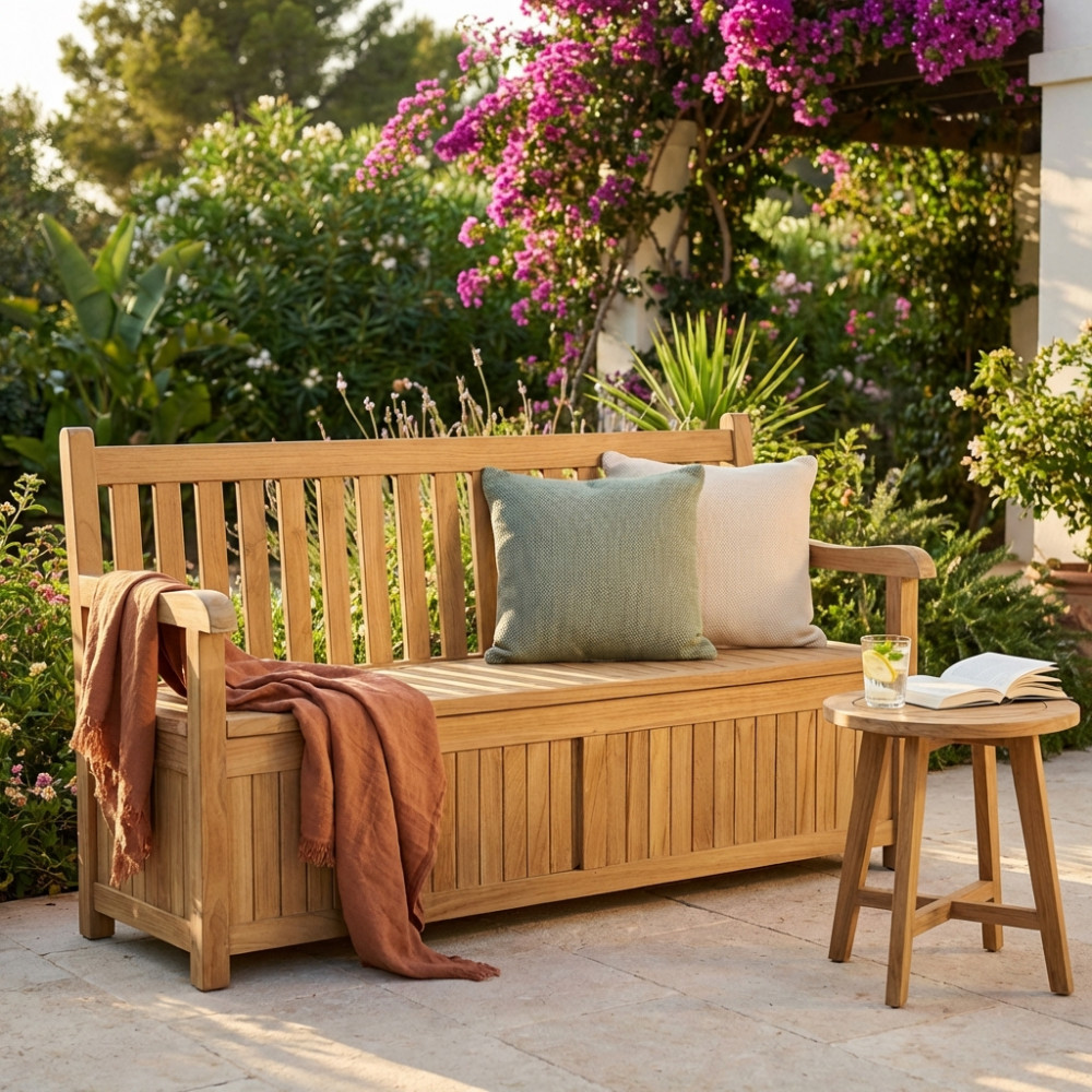 Panca con contenitore in teak Dimensioni: cm 160 l x 64 p x 92 h