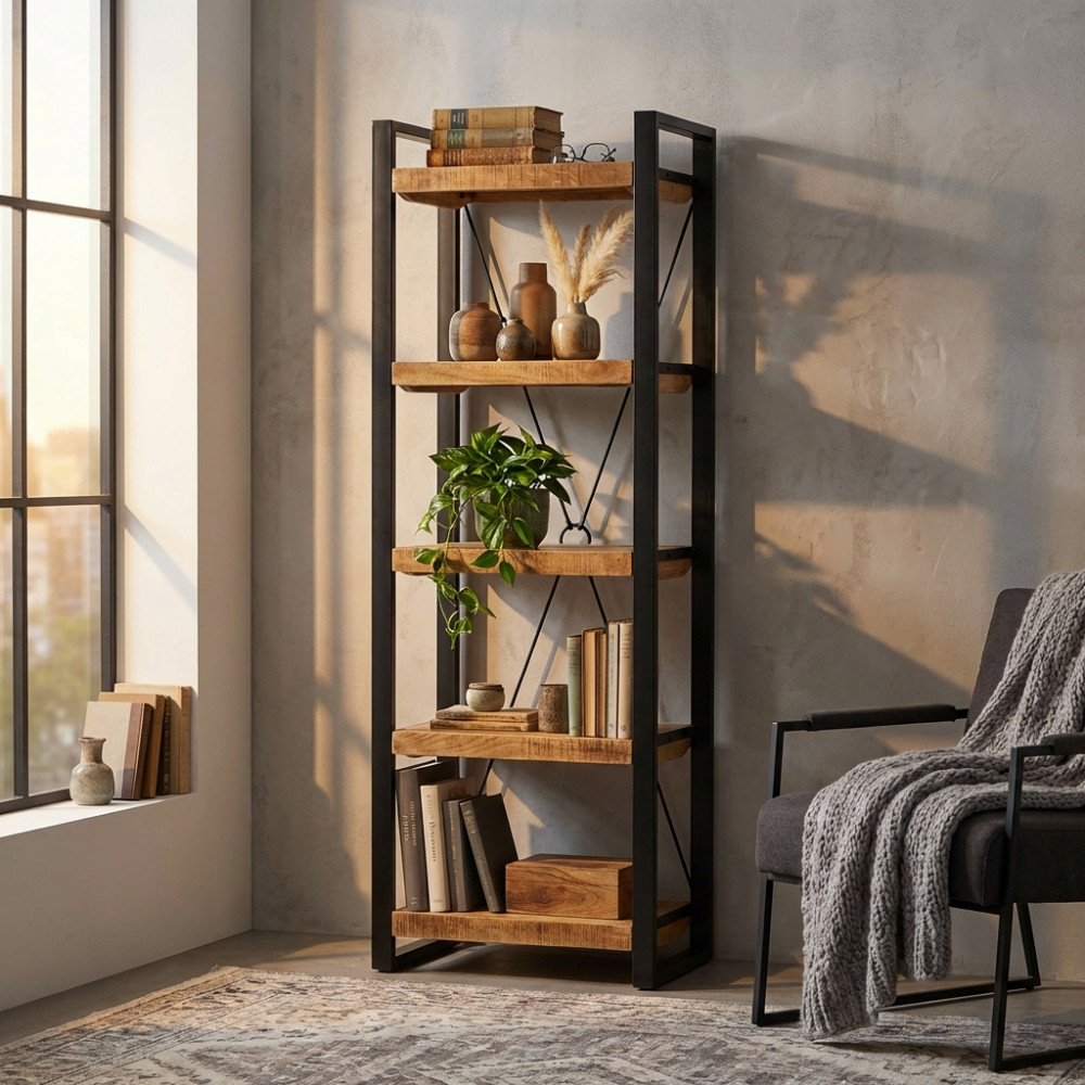 - Dati Tecnici Mobile in legno di mango con 5 ripiani Dimensioni: cm 60 l x 40 p x 180 h