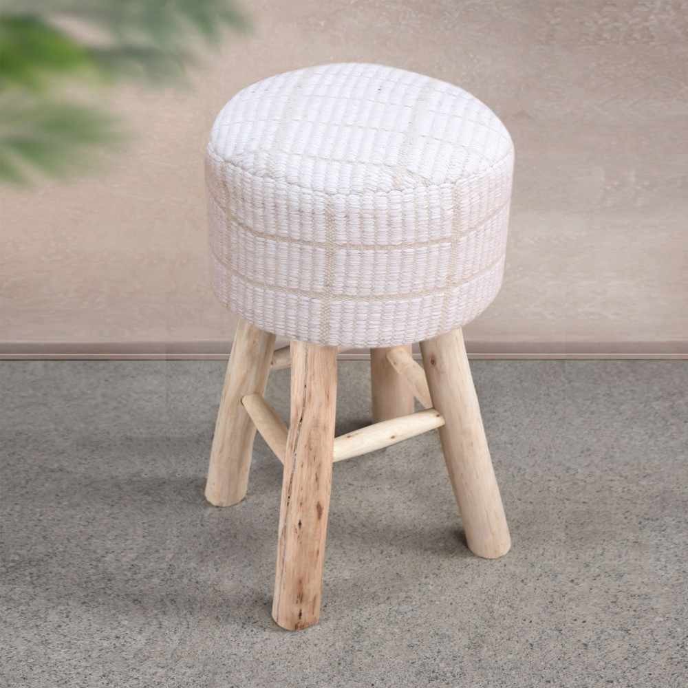 Sgabello in legno e lana Dimensioni: cm 40 l x 40 p x 70 h