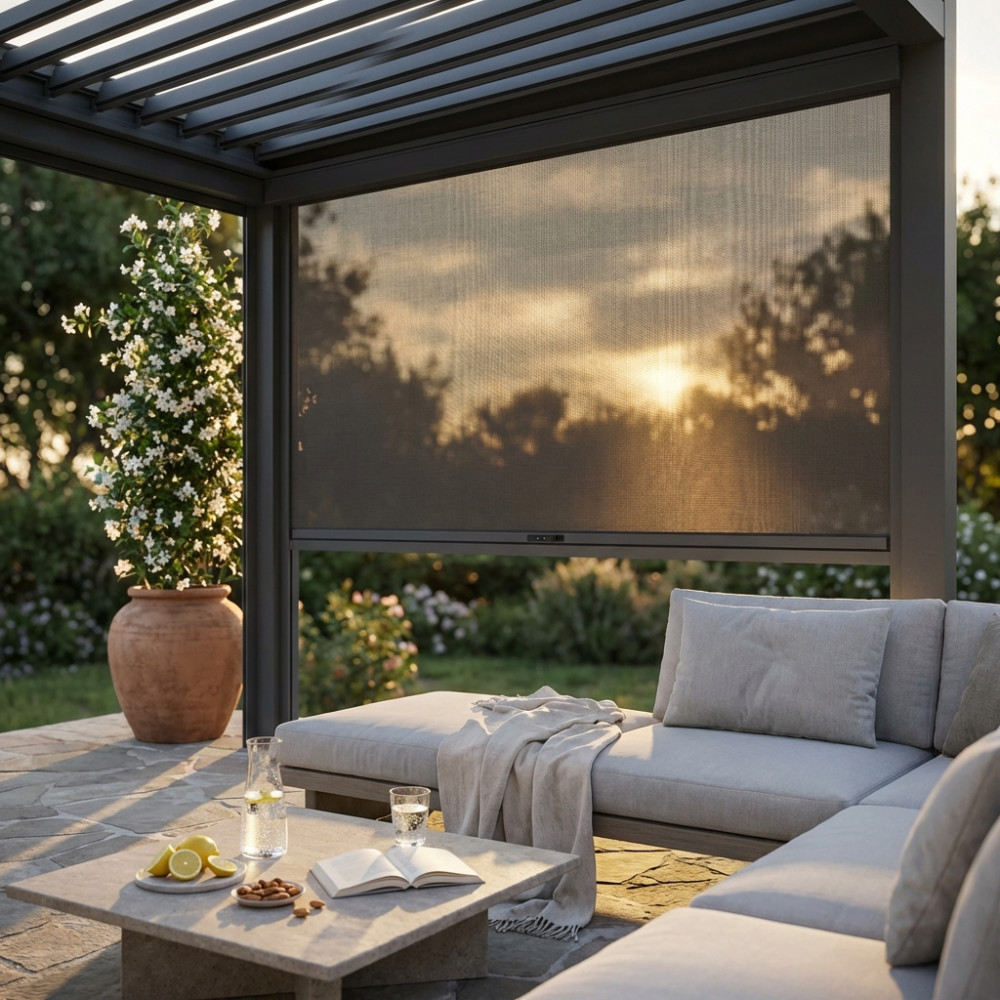 LATERALE MANUALE TEXTILENE/ZANZARIERA PER LATO DA 4 M PERGOLA BIOCLIMATICA