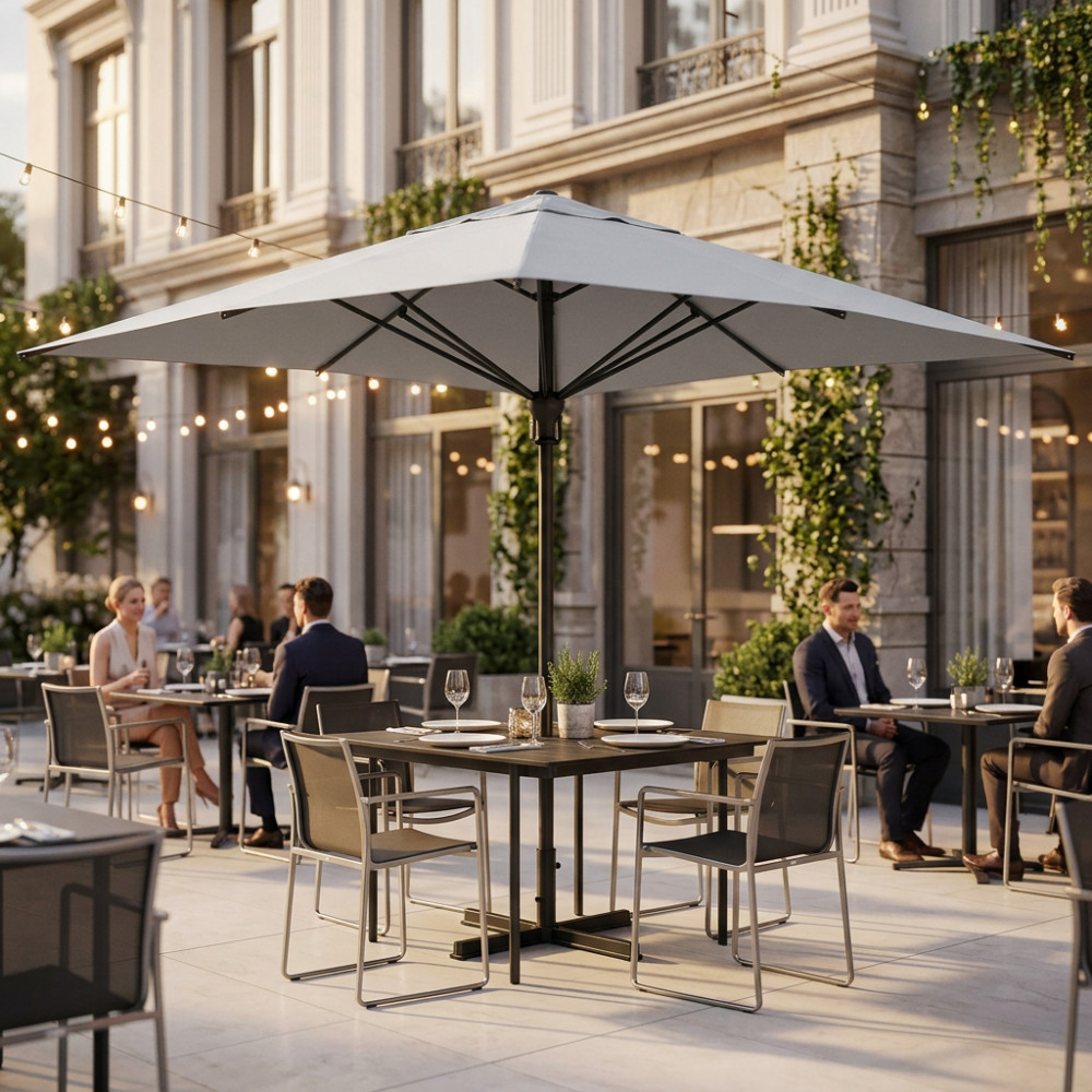 OMBRELLONE DENEB NERO P/C 4 X 4 TELO GRIGIO CHIARO