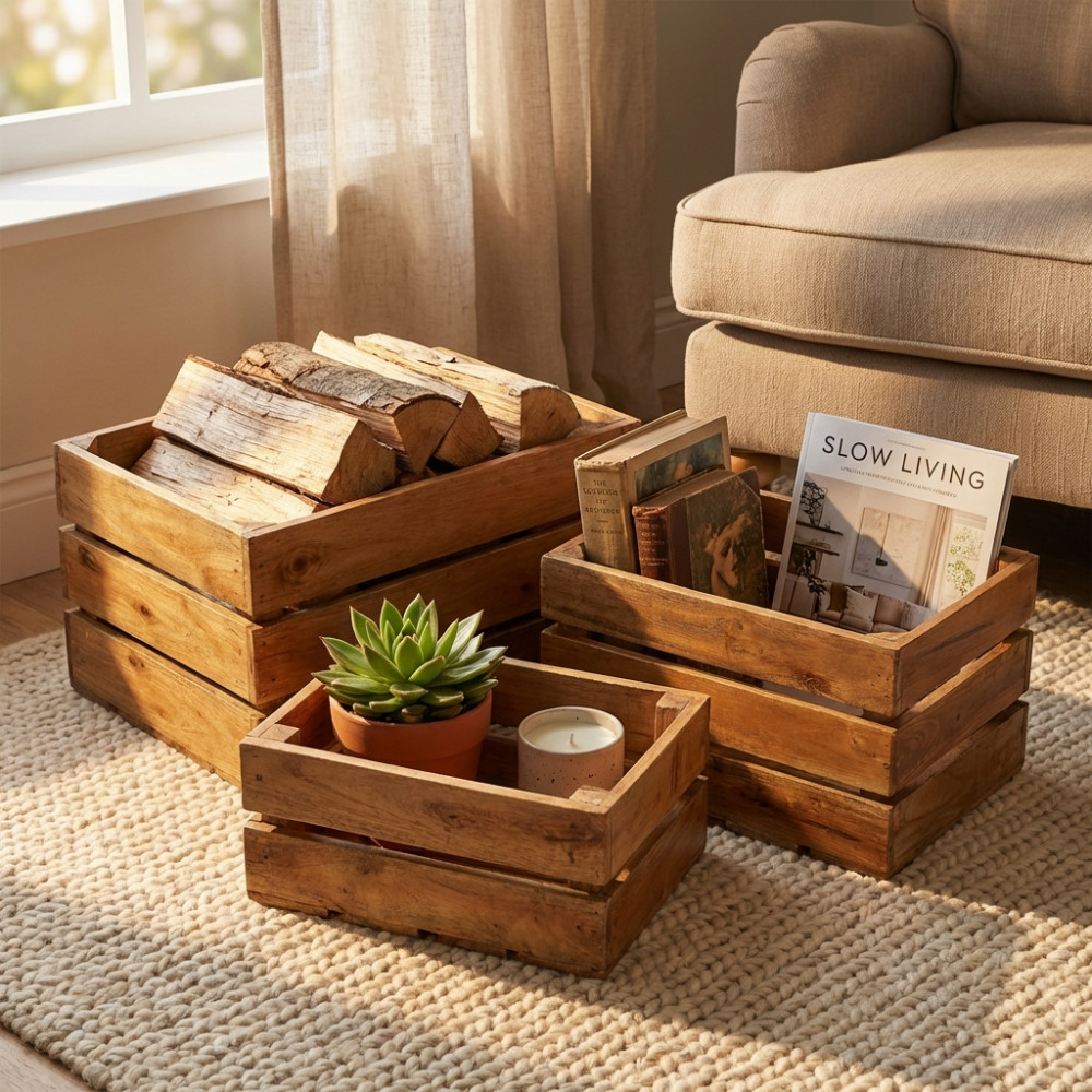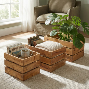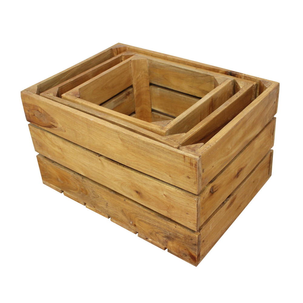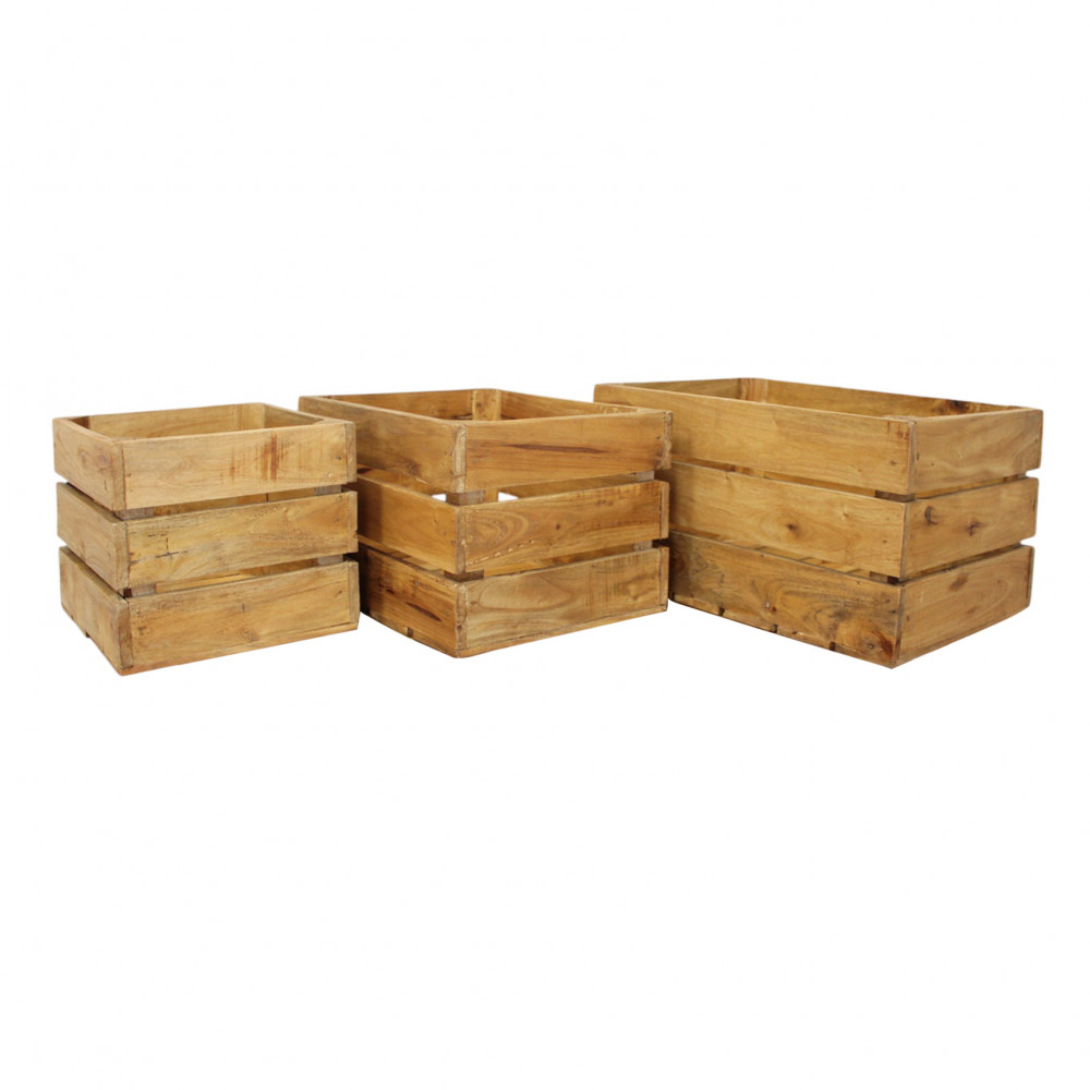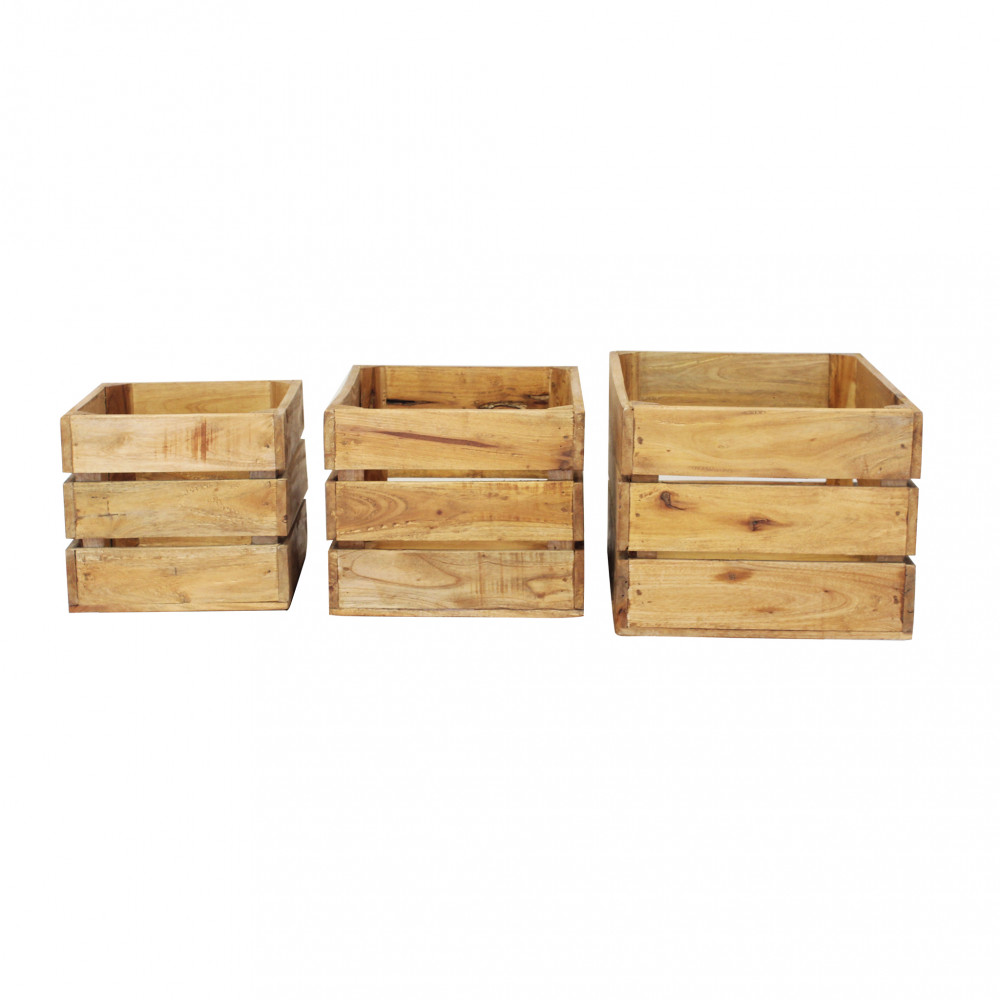 - Dati Tecnici Set di 3 cassette in legno di mogano Dimensioni: cm 50 l x 36 p x 28 h