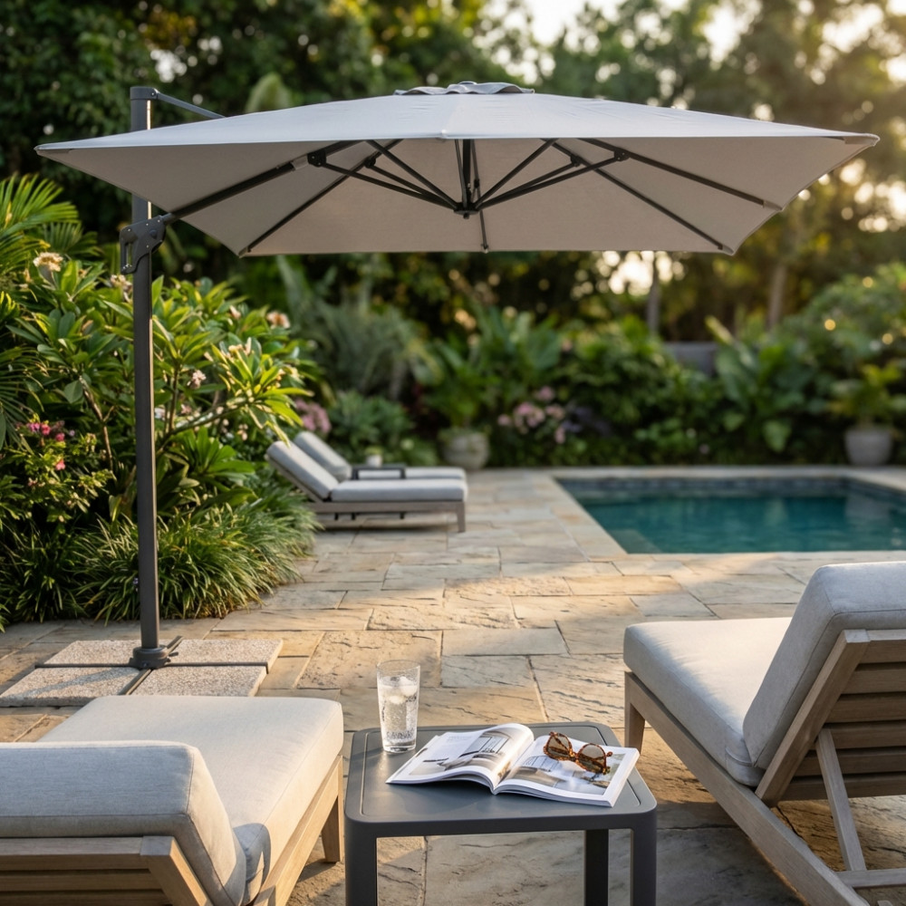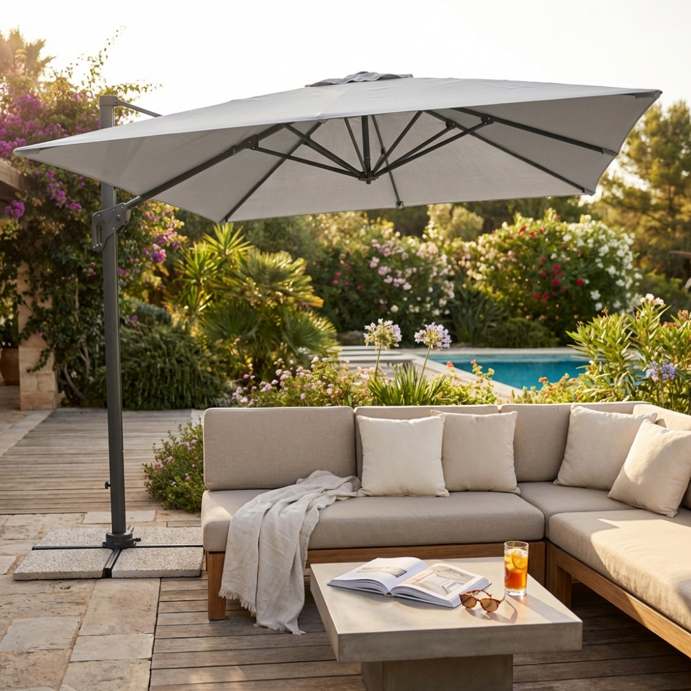 OMBRELLONE GARNET NERO P/L 3 X 3 TELO GRIGIO CHIARO