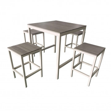 Struttura in alluminio verniciato BIANCO o TORTORA o ANTRACITE piano del tavolo e seduta sgabello in POLYWOOD colore grigio Dimensioni: T.80x80x97/P.34x34x67,5